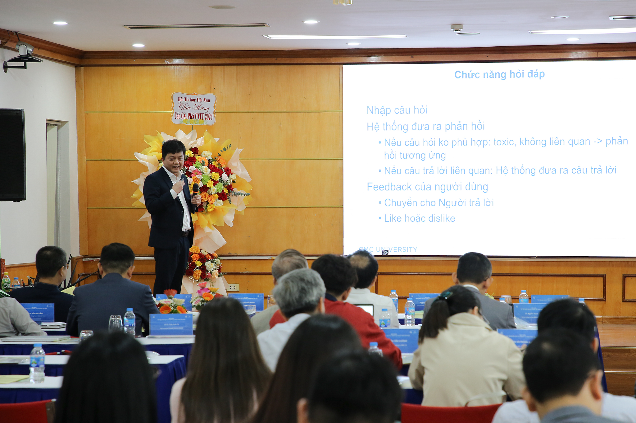 Phát biểu khai mạc hội thảo, GS.TS Nguyễn Thanh Thủy – Chủ tịch Hội đồng Giáo sư ngành Công nghệ thông tin, Chủ tịch Hội tin học Việt Nam, Chủ tịch FISU Việt Nam khẳng định AI4edu 2024 là một sự kiện quan trọng, đánh dấu những nỗ lực không ngừng của cộng đồng công nghệ thông tin trong cả nước, của các trường đại học trong việc góp phần định hình ứng dụng và phát triển của AI với giáo dục đại học của Việt Nam trong tương lai. AI4Edu 2024 là cơ hội để các chuyên gia thảo luận, chia sẻ những kết quả nghiên cứu, triển khai và những kinh nghiệm ứng dụng hiệu quả AI trong giáo dục đại học. Do đó, hội thảo mong muốn các chuyên gia đầu ngành trao đổi những định hướng quan trọng về sự hỗ trợ của AI để cùng phát triển và nâng cao chất lượng giáo dục đại học trong thời gian tới. Từ việc xây dựng chương trình giáo dục đào tạo về AI, khoa học dữ liệu cho đến ứng dụng AI trong quản trị đại học, hướng tới tầm nhìn xa hơn để giáo dục thành một nền tảng đổi mới sáng tạo.