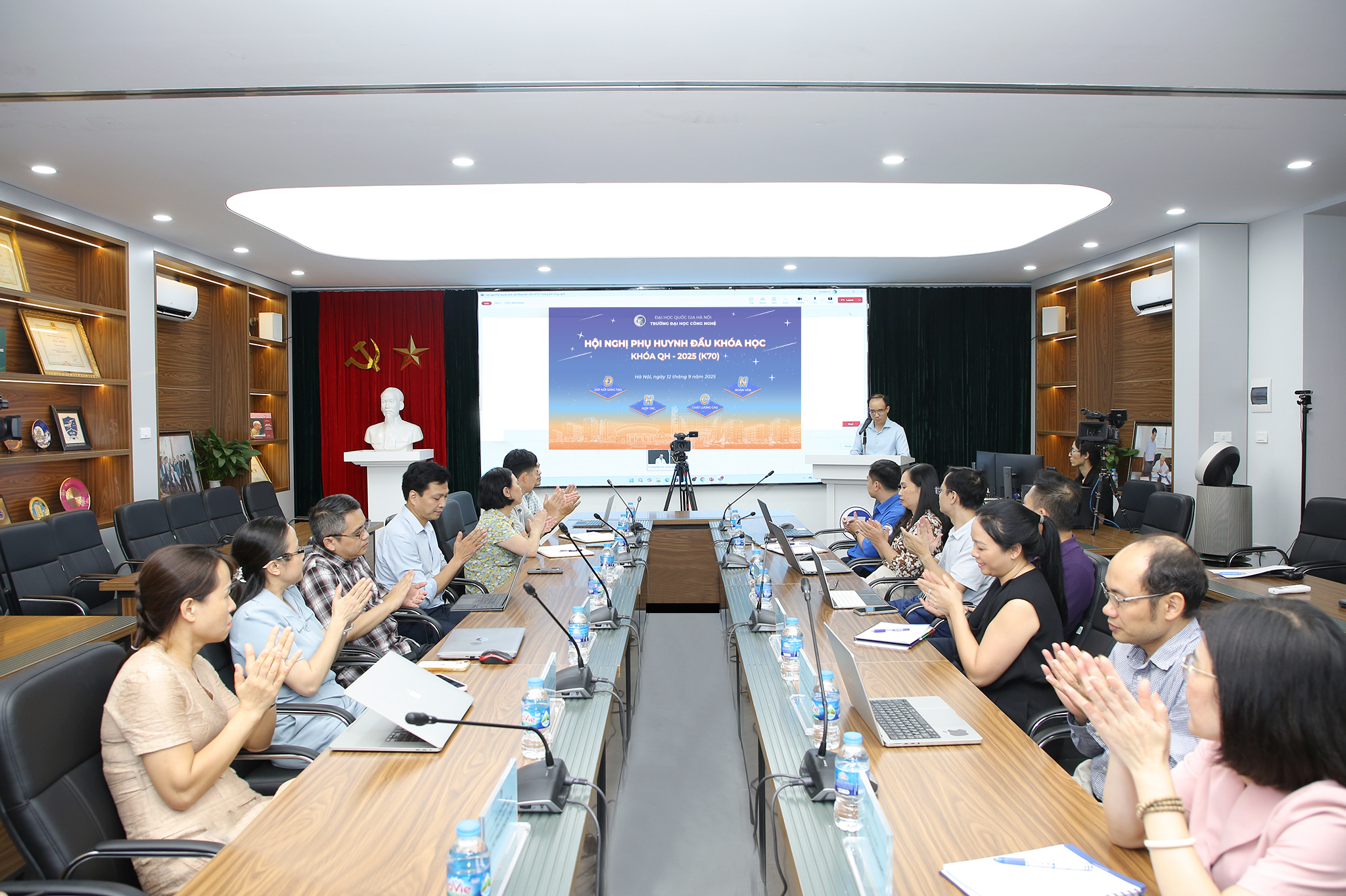 Ngày 12/9/2025, Trường Đại học Công nghệ – Đại học Quốc gia Hà Nội (VNU-UET) tổ chức Hội nghị phụ huynh đầu khóa học bằng hình thức trực tuyến, thu hút hơn 4.100 phụ huynh của tân sinh viên QH-2025 tham dự. Đây là hoạt động thể hiện sự gắn kết chặt chẽ giữa Nhà trường và gia đình, khẳng định cam kết đồng hành của UET trong suốt quá trình sinh viên học tập, rèn luyện và phát triển toàn diện.