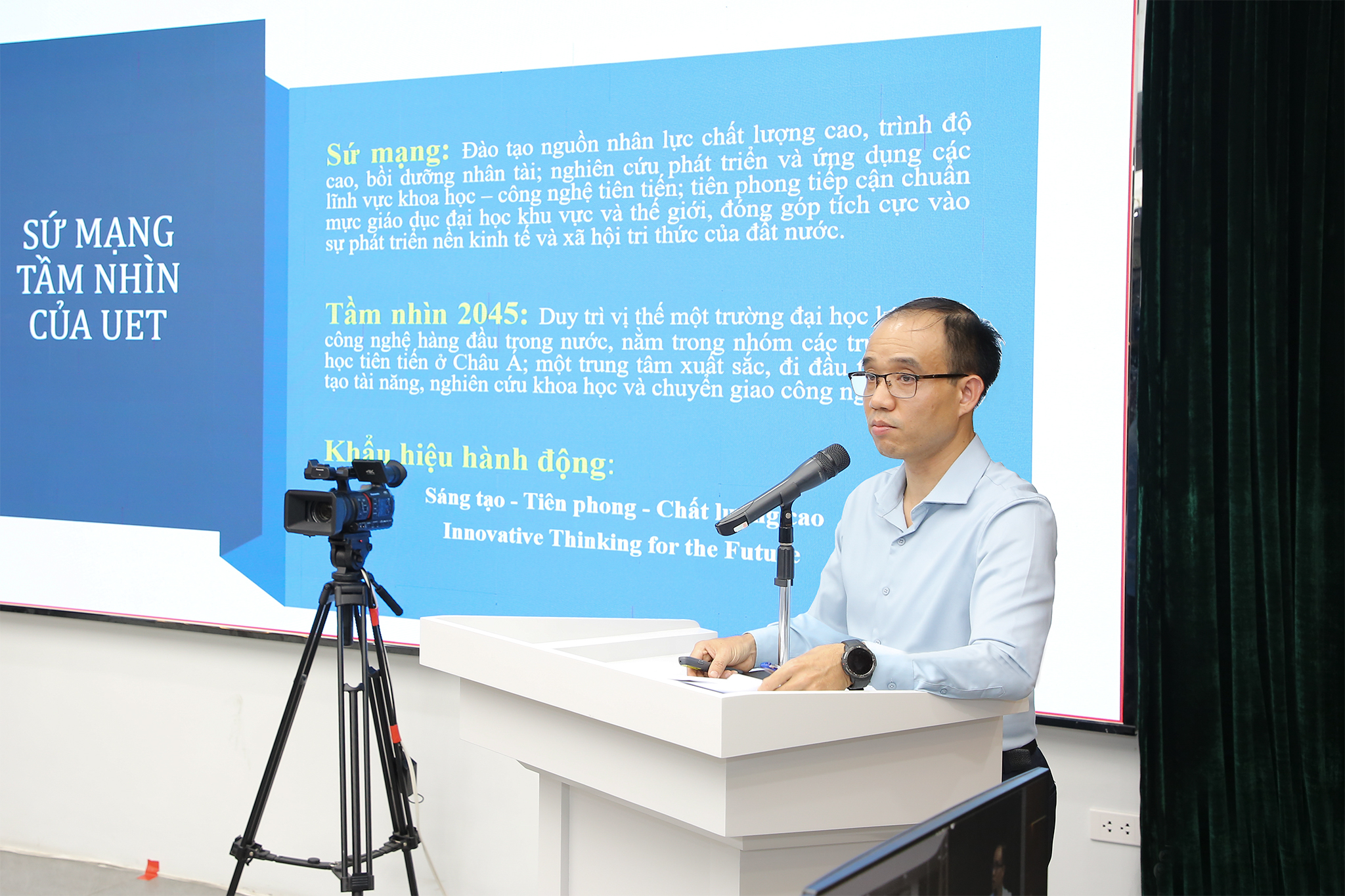 Về văn hóa làm việc, học tập tại trường, Nhà trường mong muốn xây dựng môi trường học tập, giảng dạy hiện đại, minh bạch, gắn với trách nhiệm của tất cả các bên liên quan và xã hội, trong đó phụ huynh là một bên liên quan rất quan trọng. Nhà trường mong muốn mỗi bên liên quan đồng hành với UET trong hệ sinh thái UET cần gắn với tinh thần tự chủ. Sinh viên tự chủ trong học tập, phụ huynh luôn đồng hành cùng Nhà trường, theo dõi và phản biện.