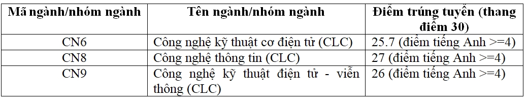 – Điểm tối thiểu cho mỗi môn thi/bài thi trong tổ hợp xét tuyển phải lớn hơn 1,0 điểm; Đối với các CTĐT CLC điểm tiếng Anh tối thiểu đạt từ 4/10 trở lên.