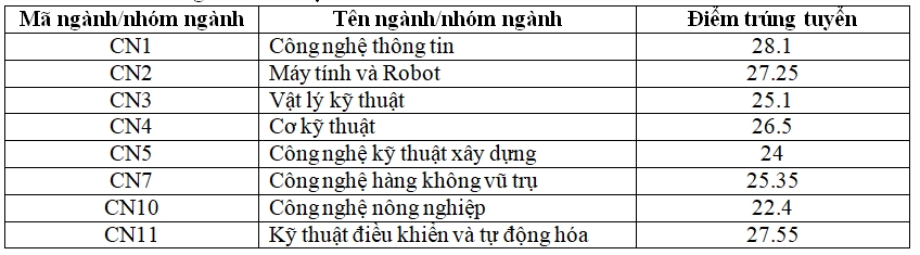 – Điểm trúng tuyển là tổng điểm 3 môn thi/bài thi đối với thí sinh thuộc khu vực 3 (KV3), được làm tròn đến hai chữ số thập phân