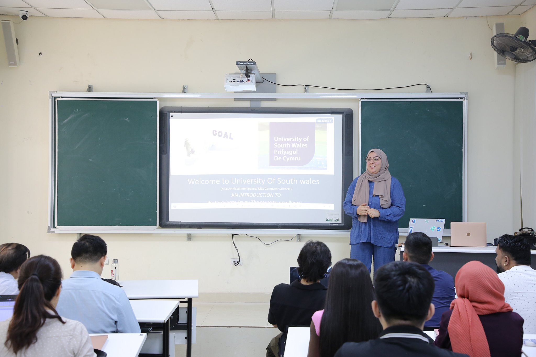 Chương trình làm việc và giao lưu giữa đoàn giảng viên, sinh viên Đại học South Wales – Vương Quốc Anh và các sinh viên, giảng viên Trường ĐH Công nghệ – ĐHQGHN bắt đầu với phần giới thiệu của hai trường trong không khí thân thiện và nồng nhiệt của toàn thể sinh viên và giảng viên. Những ngày tham gia trao đổi và giao lưu học thuật tại UET, TS. Mabrouka Abuhmida, TS. Robert Whittey cùng các sinh viên của Đại học South Wales và Trường ĐH Công nghệ đã cùng nhau tìm hiểu về lịch sử, chương trình đào tạo của hai bên. Bên cạnh đó, giảng viên và cán bộ Trường ĐH Công nghệ, ĐH South Wales cũng đã có buổi trao đổi các nghiên cứu về ứng dụng trí tuệ nhân tạo trong lĩnh vực nông nghiệp. Qua những buổi trao đổi học thuật, sinh viên hai trường đại học đã có thêm những bài học bổ ích, thú vị, đồng thời còn có cơ hội tham gia khoá học ngắn AI Upskilling Workshop, gắn kết hơn tình bạn giữa các sinh viên Việt Nam – UK.