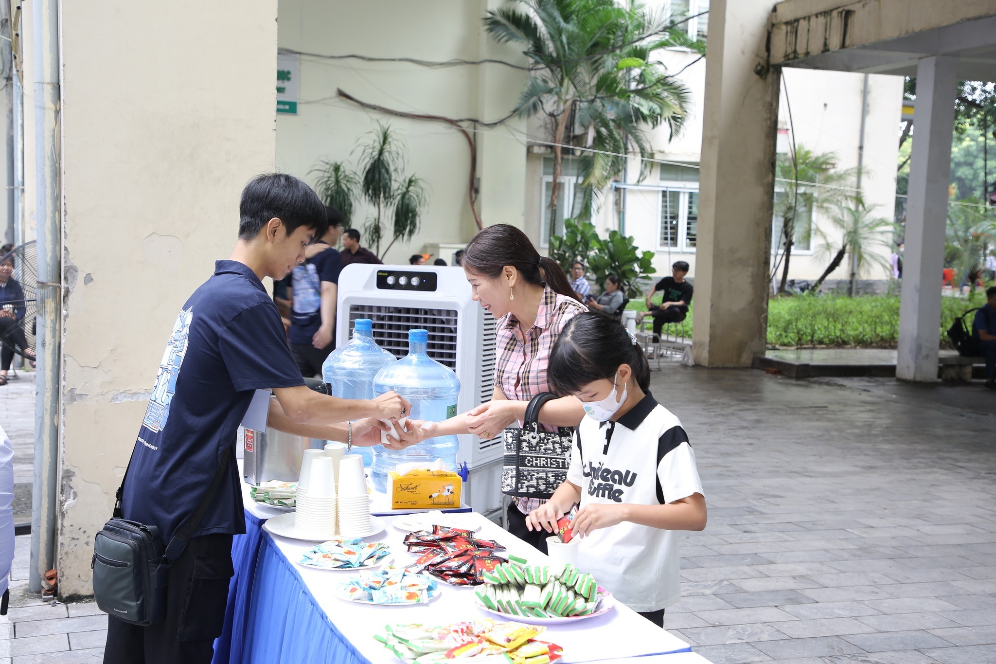 Tân sinh viên Trần Thị Nguyên Hà và phụ huynh tại buổi nhập học