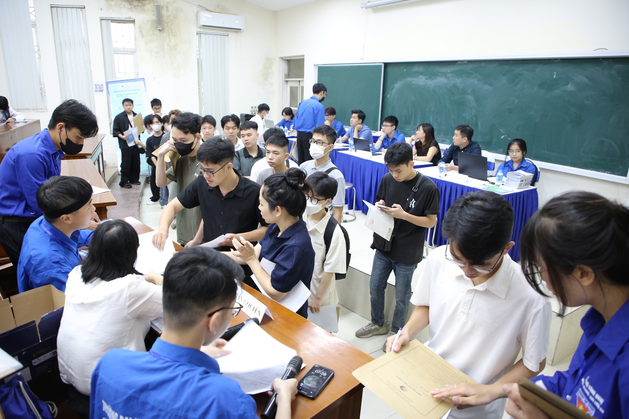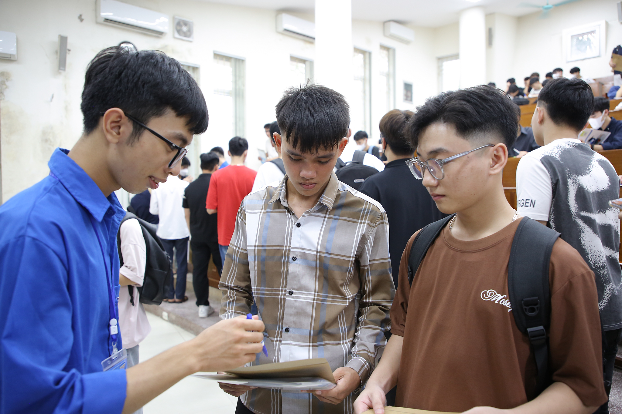 Chia sẻ về công tác nhập học, TS. Bùi Trung Ninh – Trưởng phòng Công tác sinh viên cho biết: “Để ngày nhập học trở thành ngày hội của phụ huynh và tân sinh viên, phòng Công tác sinh viên phối hợp cùng các đơn vị chức năng trong trường đã xây dựng kế hoạch ngay từ sớm. Với số lượng nhập học đông hơn so với các năm nên chúng tôi đã phân chia thành các ca nhập học được bố trí tại các địa điểm là hội trường Nguyễn Văn Đạo, nhà G2 và giảng đường 3G3. Năm nay, các tân sinh viên được hướng dẫn đến từng phòng, ngồi chuẩn bị hồ sơ, đồng thời Nhà trường đã bố trí đội ngũ cộng tác viên hướng dẫn chi tiết, các em sẽ được gọi lên làm thủ tục nhập học tại một bàn duy nhất”.