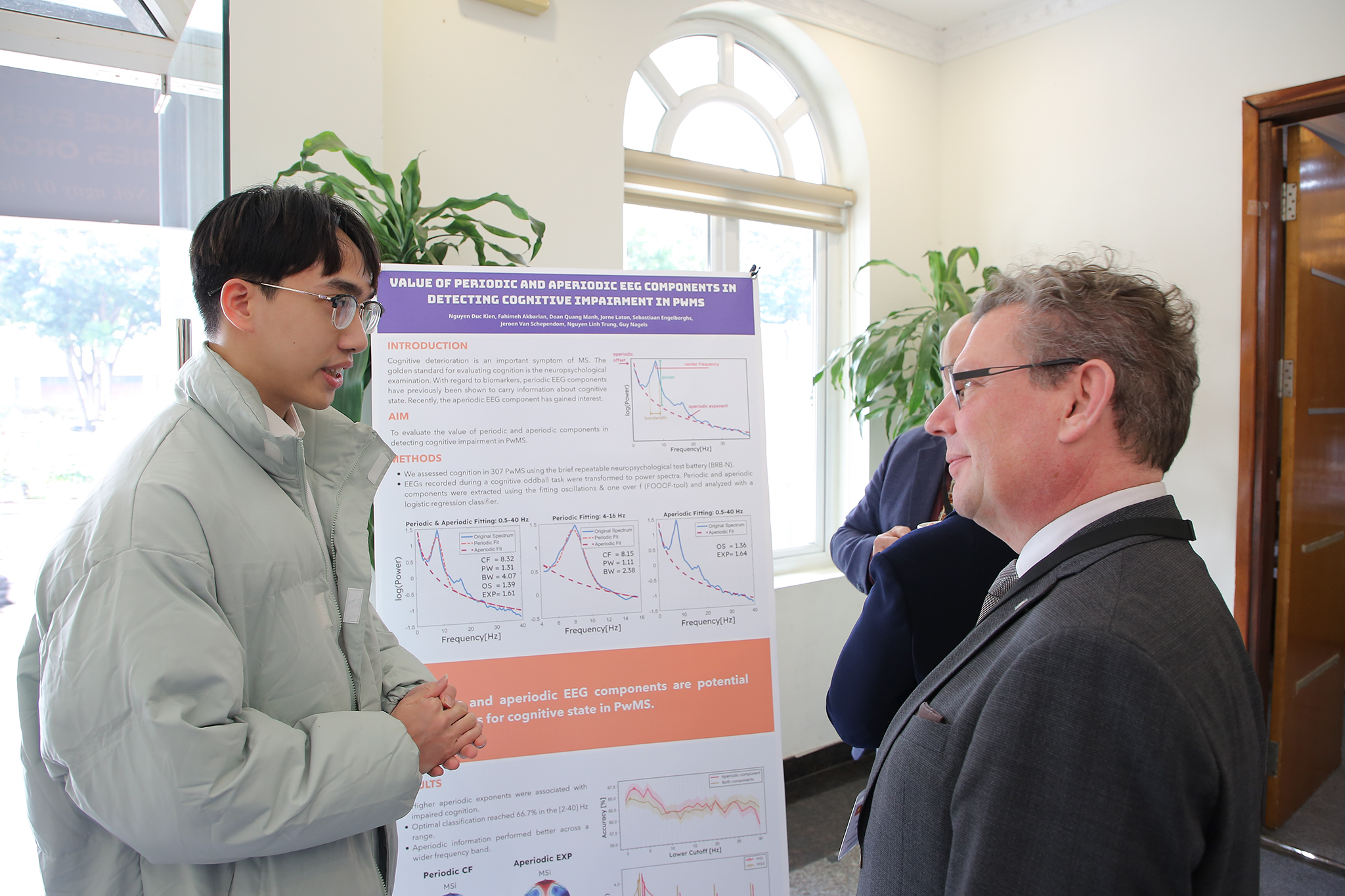 Bên cạnh những báo cáo tại hội thảo, phần trưng bày poster của học viên Trường ĐH Công nghệ về các dự án nghiên cứu trong lĩnh vực y học số, do GS.TS Guy Nagels – ĐH Vrije Universiteit Brussel và PGS.TS Nguyễn Linh Trung – Trường ĐH Công nghệ, ĐHQGHN đồng hướng dẫn, cũng nhận được sự quan tâm đến từ các đại biểu tham dự. Những hợp tác trong đào tạo giữa UET và VUB là bước khởi đầu để hai bên có những hợp tác chuyên sâu trong lĩnh vực y học số thời gian tới.