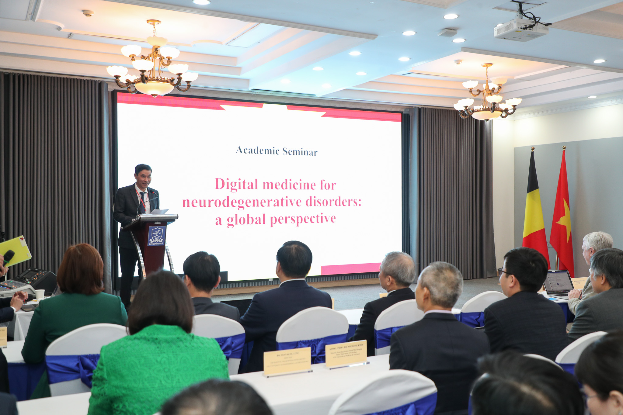 Phó Giám đốc khẳng định, sự hợp tác giữa Trường ĐH Y Dược, Trường ĐH Công nghệ ĐHQGHN, VUB và Bệnh viện Bạch Mai là một minh chứng rõ ràng cho cam kết của chúng ta trong việc thúc đẩy nghiên cứu, ứng dụng y học số. Phó Giám đốc cũng bày tỏ niềm tin, thông qua việc chia sẻ kiến thức, kinh nghiệm và kết quả nghiên cứu mới nhất, hội thảo sẽ góp phần quan trọng vào việc tìm ra các giải pháp hiệu quả hơn trong điều trị các bệnh lý thoái hóa thần kinh, đồng thời mở ra những cơ hội hợp tác mới giữa các bên.