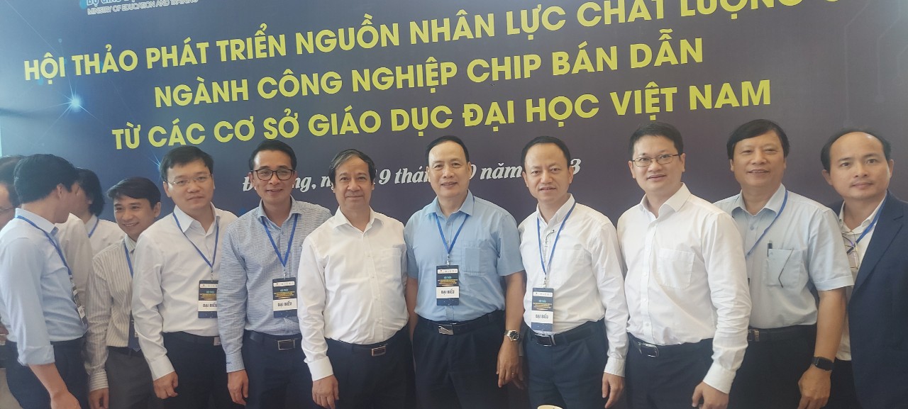 Lãnh đạo ĐHQGHN, ĐH Bách Khoa, ĐH Đà Nẵng và lãnh đạo trường ĐHCN tại Hội thảo Phát triển nguồn nhân lực CLC ngành công nghiệp chip bán dẫn tại Đà Nẵng, tháng 10/2023