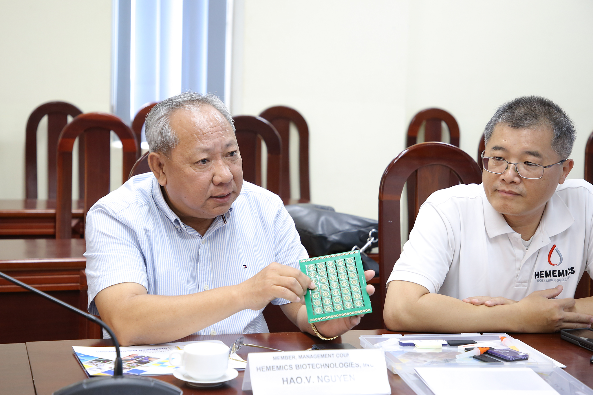 Thành viên Hội đồng quản trị giới thiệu các vi mạch do Công ty Hememic Biotechnologies nghiên cứu