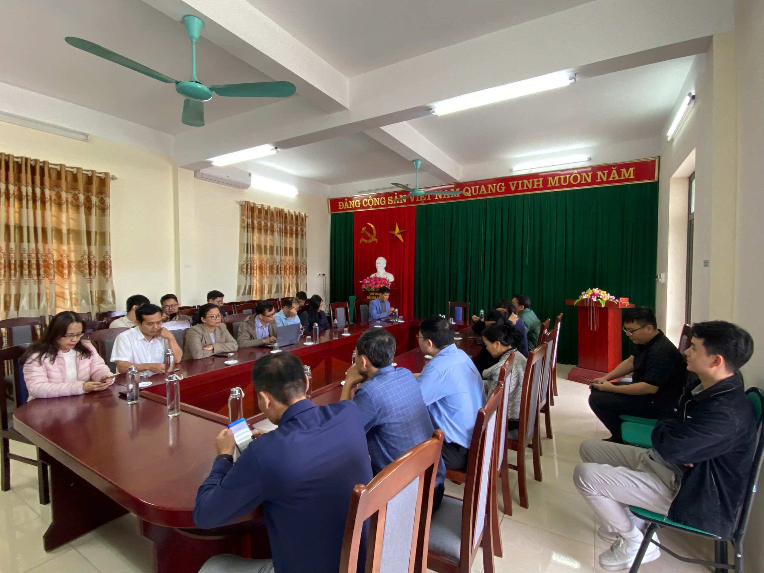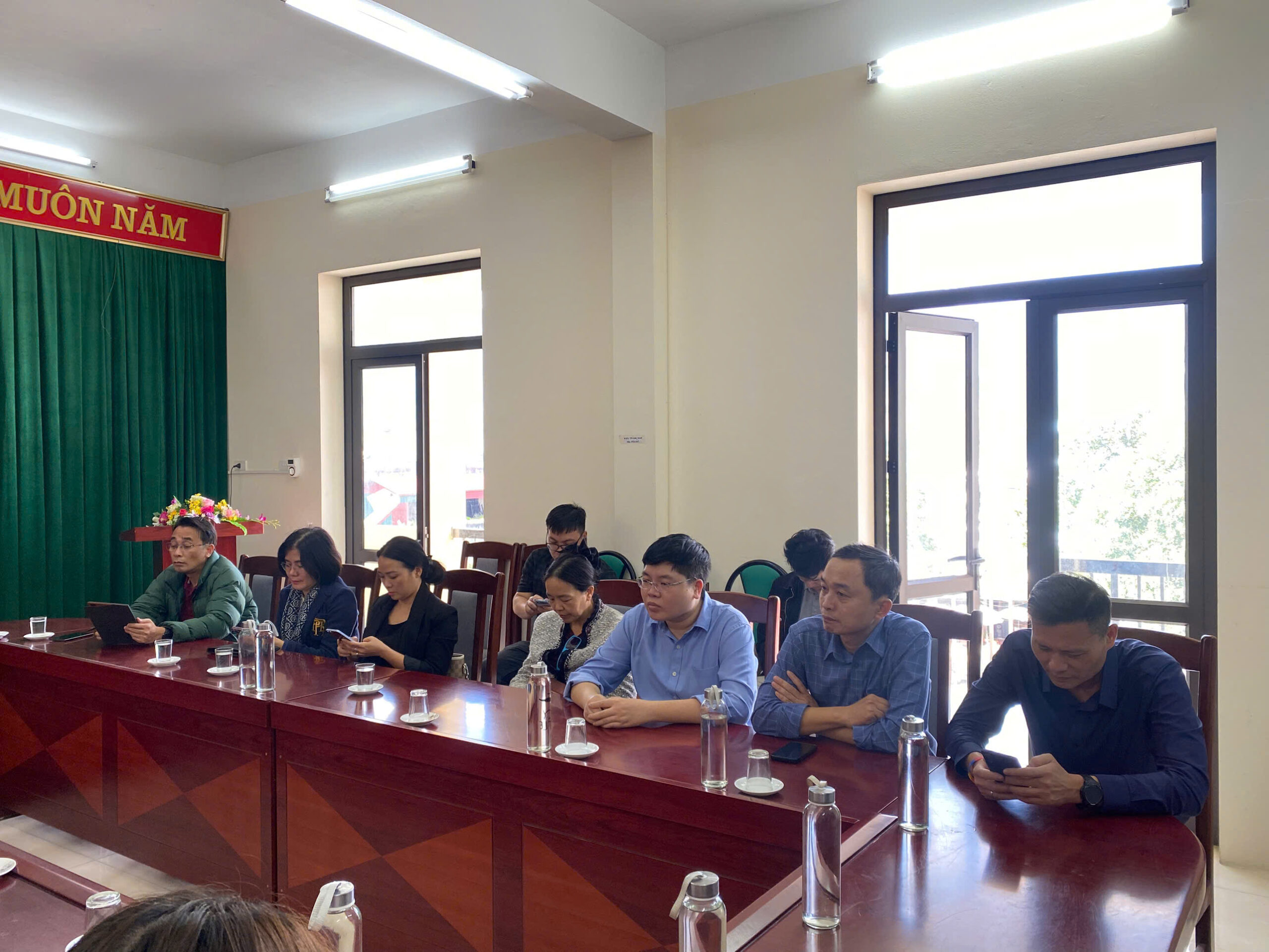 Tiếp và làm việc với đoàn Trường ĐH Công nghệ, về phía xã Tú Lệ có bà Đinh Thị Hường, Phó Chủ tịch UBND xã cùng đại diện các phòng, ban.