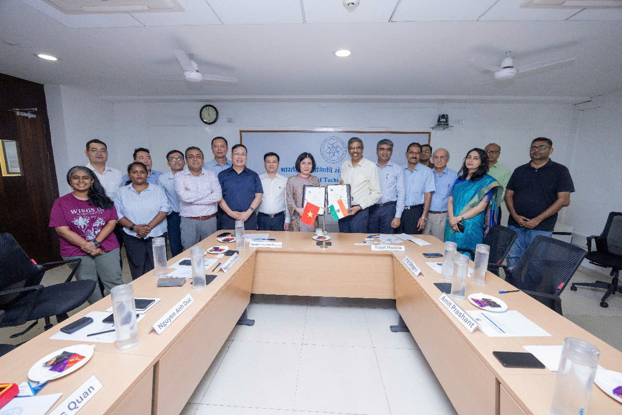 Tiếp đó, ngày 18/9/2025, tại IIT Gandhinagar, Trường ĐH Công nghệ tiếp tục ký kết Biên bản hợp tác với sự tham dự của lãnh đạo hai bên, đại diện Cục Chuyển đổi số quốc gia (Bộ Khoa học và Công nghệ) và đại diện Đại sứ quán Việt Nam tại Ấn Độ. Thỏa thuận này mở ra nhiều hướng hợp tác trong các lĩnh vực mũi nhọn như robotics, năng lượng mới, bán dẫn, kỹ thuật xây dựng, công nghệ thông tin, khoa học máy tính, đặc biệt là ứng dụng trí tuệ nhân tạo trong giáo dục, y tế và khoa học vật liệu.