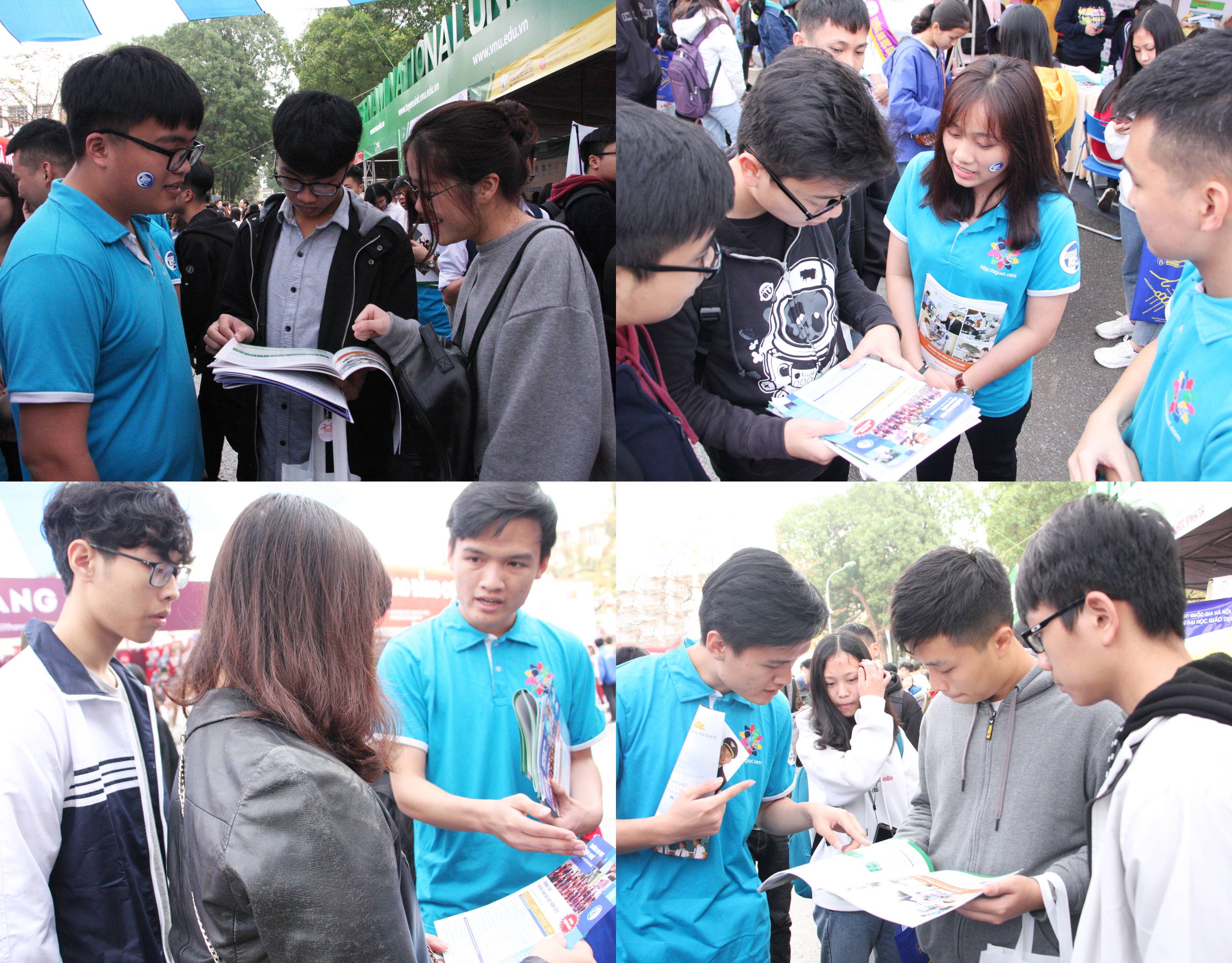 Năm nay, bằng nhiều hình thức tư vấn trực tiếp, phát tờ rơi,… gian hàng giới thiệu của Trường ĐH Công nghệ đã thu hút được rất nhiều sự quan tâm của các bạn học sinh cũng như phụ huynh.