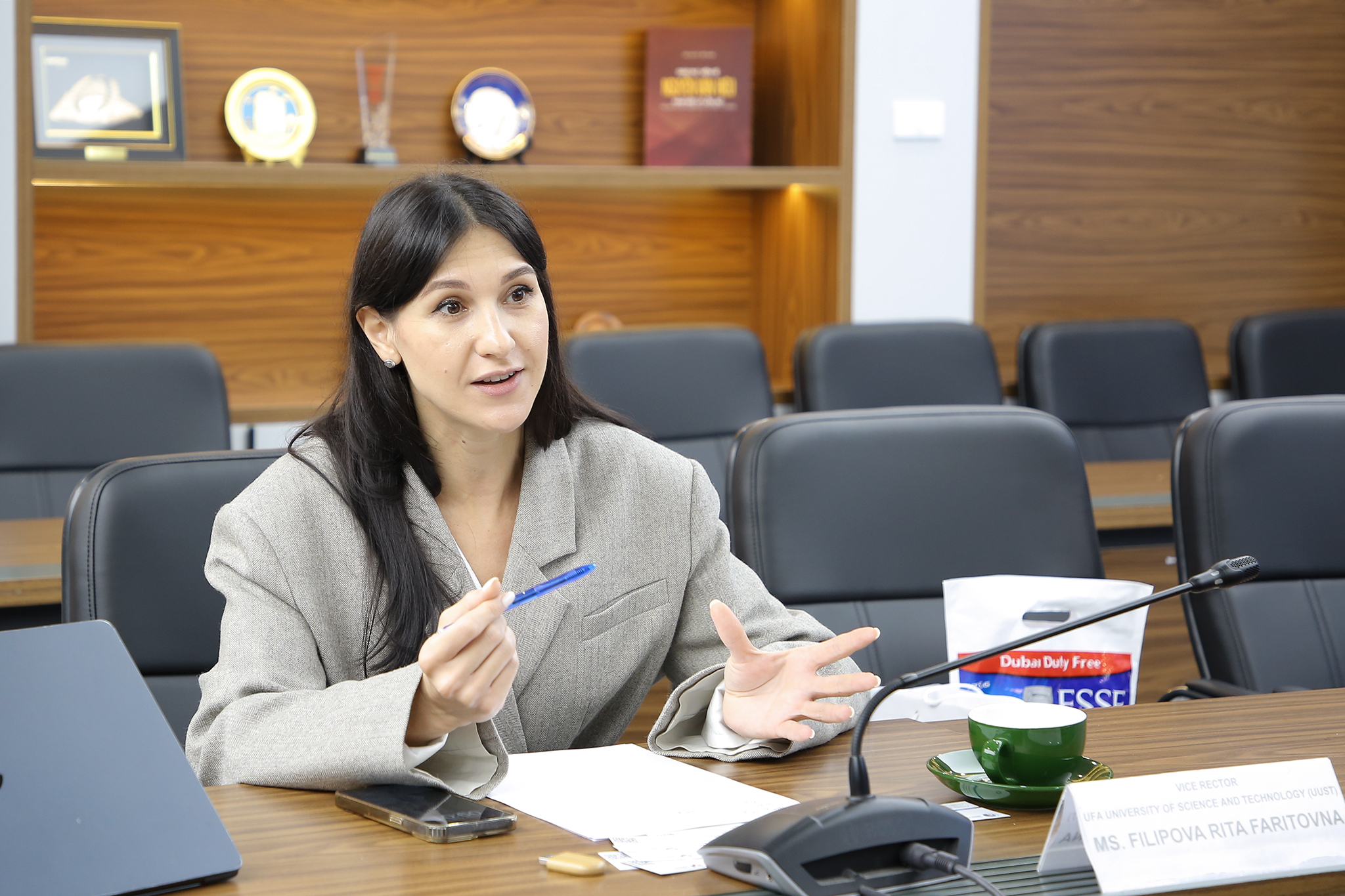 Bà Filipova Rita Faritovna – Phó Hiệu trưởng UUST đã đánh giá cao việc hợp tác với Trường ĐH Công nghệ. Bà khẳng định rằng các trường đại học của Nga nói chung và UUST nói riêng có nhiều tiềm năng và thế mạnh, hoàn toàn có thể đáp ứng tốt những lĩnh vực mà Nhà trường đề xuất. Bà Filipova Rita Faritovna đã giới thiệu về UUST là một trường đại học có quy mô lớn nhất khu vực sau khi sáp nhập Đại học tổng hợp quốc gia Bashkir và Đại học Kỹ thuật Hàng không quốc gia Ufa. UUST hiện nay có 14 khoa viện, 6 chi nhánh, 48.000 sinh viên, trong đó hơn 3.000 sinh viên quốc tế đến từ 60 quốc gia trên thế giới. UUST triển khai đào tạo của chương trình cử nhân, thạc sĩ và chuyên gia với hơn các chương trình về kinh tế, kỹ thuật, khoa học tự nhiên, công nghệ thông tin, khoa học xã hội, nhân văn, ngữ văn và pháp lý.