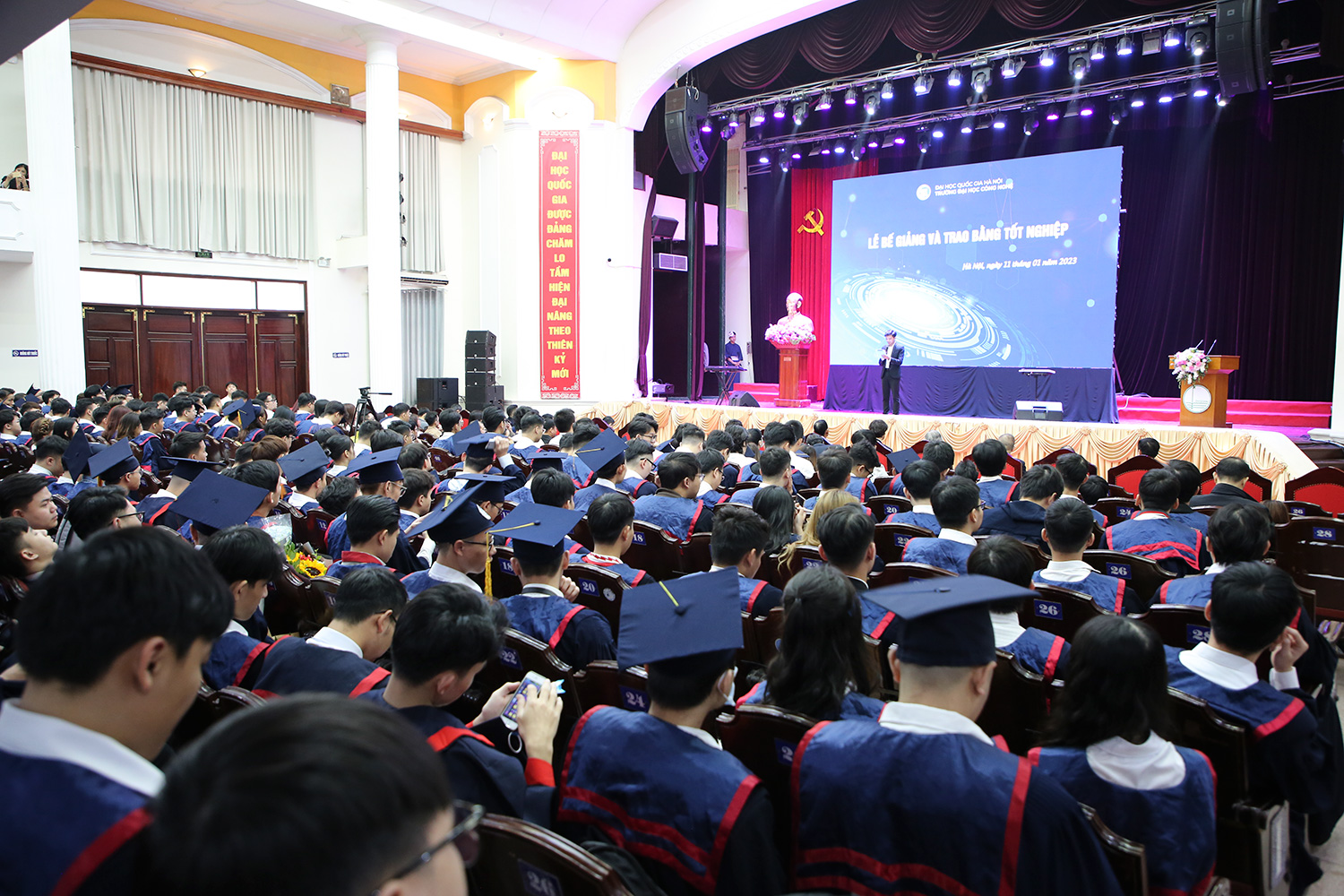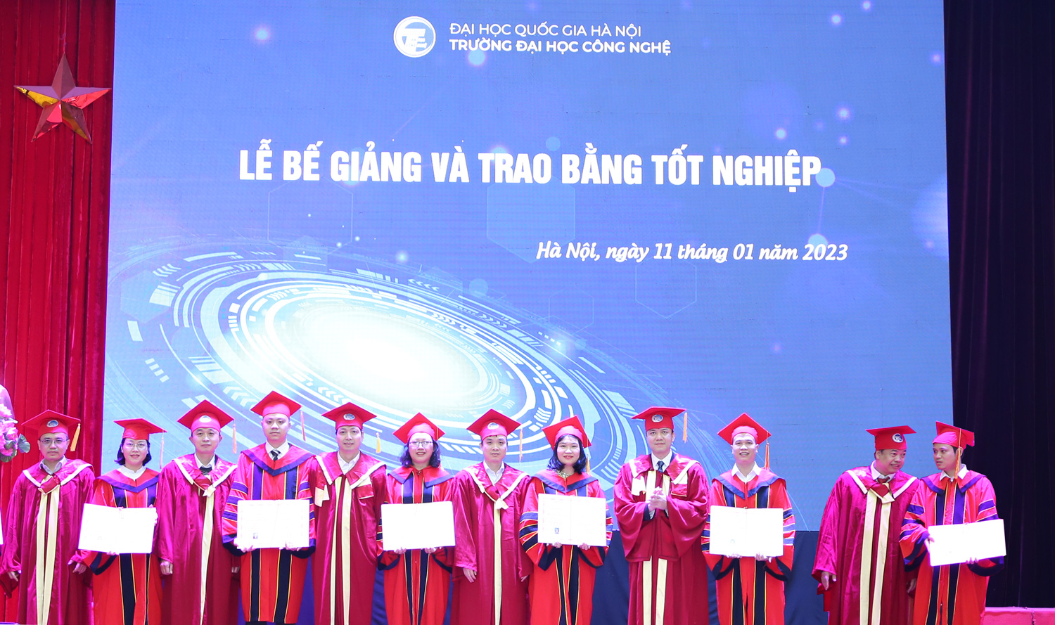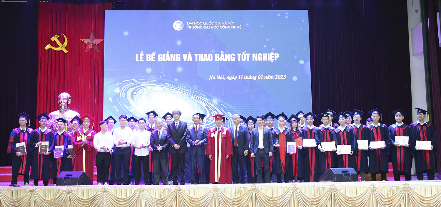 Ngày 11/01/2022, tại Hội trường Nguyễn Văn Đạo, trong không khí phấn khởi chào mừng Xuân Quý Mão sắp đến, Trường Đại học Công nghệ – Đại học Quốc gia Hà Nội đã long trọng tổ chức Lễ trao bằng tốt nghiệp cho người học đã hoàn thành chương trình đào tạo. Đặc biệt lần trao bằng này có sự tham dự của các tân kỹ sư đầu tiên ngành Kỹ thuật robot – chương trình đào tạo có sự hỗ trợ, phối hợp giảng dạy từ phía Trường ĐH Công nghệ Chiba, Nhật Bản (gọi tắt là ĐH Chiba).