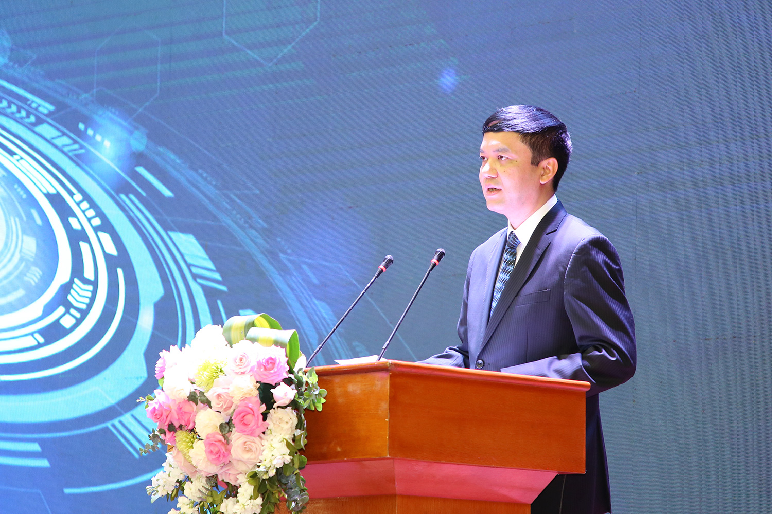 Phát biểu khai mạc, Hiệu trưởng Nguyễn Việt Hà gửi lời chúc mừng đến 06 tân tiến sĩ, 27 tân thạc sĩ, 377 tân kỹ sư và cử nhân của trường. Mặc dù trong những năm qua do ảnh hưởng dịch Covid-19 cùng với những thách thức, cơ hội về sự phát triển nhanh chóng của khoa học và công nghệ nhưng Hiệu trưởng vẫn đánh giá cao những kết quả học tập xuất sắc của người học. Đặc biệt là những tân kỹ sư khóa I của ngành Kỹ thuật robot cũng là những kỹ sư đầu tiên của Việt Nam trong lĩnh vực công nghệ cao này đã tốt nghiệp với thành tích xuất sắc. PGS mong muốn các tân kỹ sư khóa I ngành Kỹ thuật robot hãy tự hào, tự tin phát triển bản thân vì các em được học tập một chương trình đào tạo theo chuẩn quốc tế với sự hỗ trợ từ phía ĐH Chiba, Nhật Bản. Qua đây, PGS đã gửi lời cảm ơn đến các giáo sư và ĐH Chiba đã hỗ trợ Trường ĐH Công nghệ trong công tác phát triển ngành Kỹ thuật robot. Đồng thời, khẳng định mô hình này là sự tương trợ hợp tác trong thế giới hội nhập và Nhà trường sẽ tiếp tục phát huy, nâng cao chất lượng đào tạo, phát triển sản phẩm có ích cho xã hội.