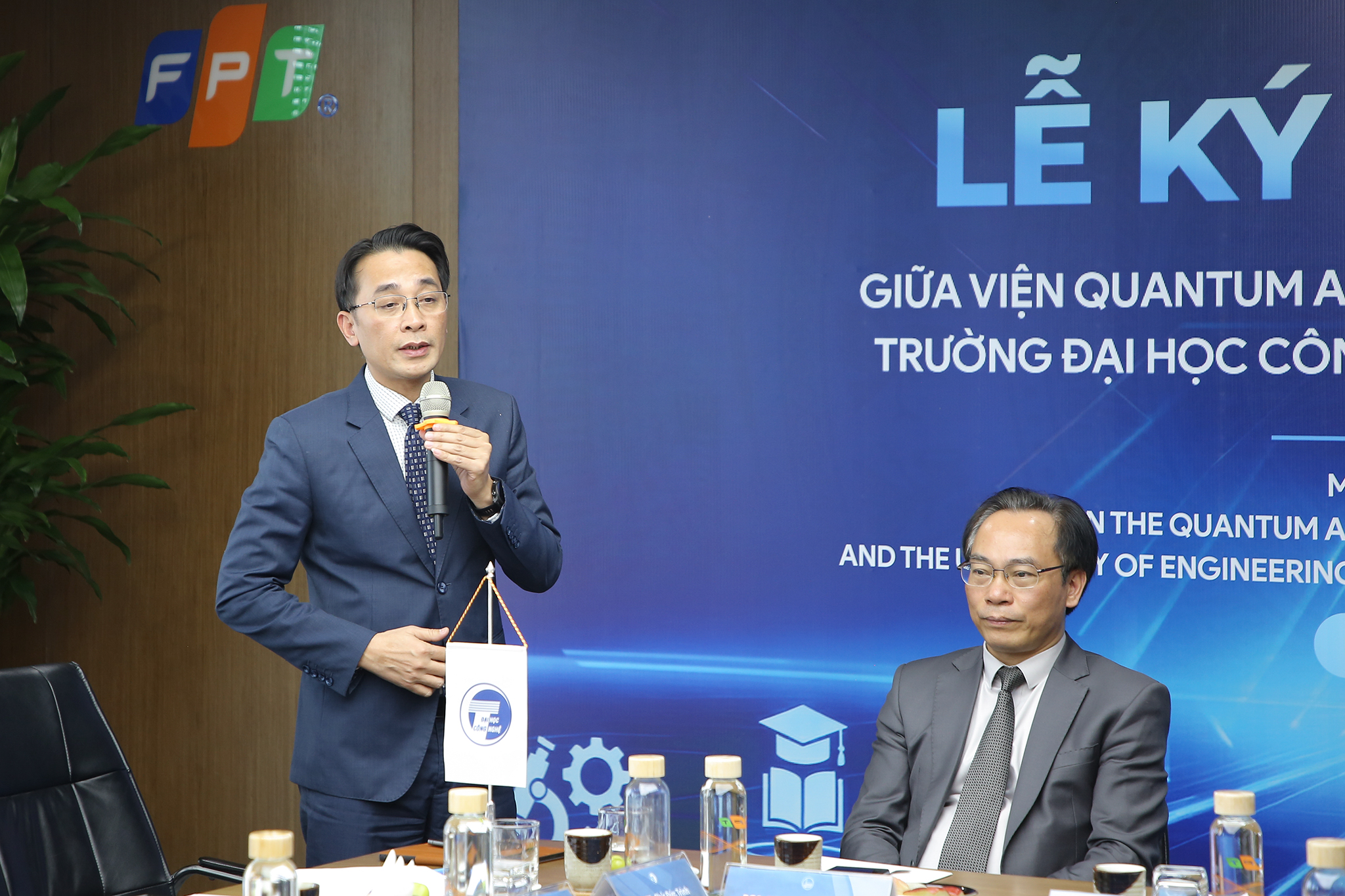 Phát biểu tại buổi lễ, Chủ tịch Tập đoàn FPT Trương Gia Bình một lần nữa khẳng định mối quan hệ hợp tác gắn bó, bền chặt giữa Tập đoàn FPT và Trường ĐH Công nghệ – Đại học Quốc gia Hà Nội. Ông đồng thời chia sẻ những kỷ niệm sâu sắc trong quá trình gắn bó với ĐHQGHN, đặc biệt là với cố GS. VS Nguyễn Văn Đạo – nguyên Giám đốc ĐHQGHN. Theo Chủ tịch FPT, quan hệ hợp tác giữa hai bên đã được xây dựng và phát triển qua nhiều năm, và lễ ký kết lần này mang ý nghĩa “khác biệt”, đặc biệt quan trọng trong bối cảnh mới.