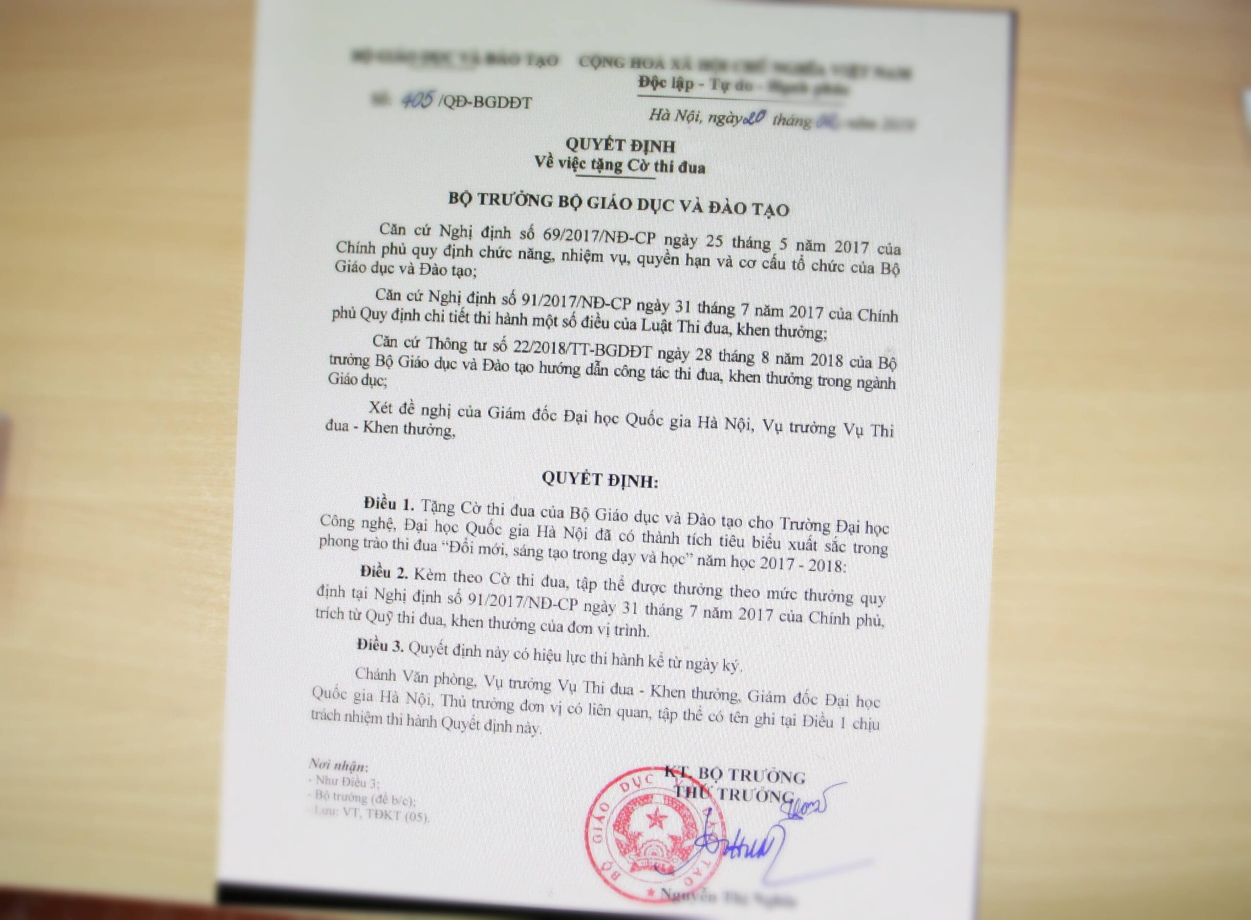 Trường Đại học Công nghệ: Vinh dự nhận Cờ thi đua của Bộ Giáo dục và Đào tạo