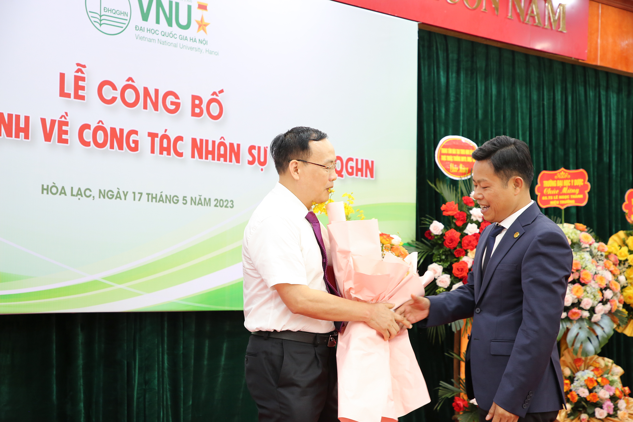 Ngày 17/5/2023, tại Hòa Lạc, Giám đốc ĐHQGHN Lê Quân đã trao quyết định công nhận chức danh Chủ tịch Hội đồng trường cho GS.TSKH Nguyễn Đình Đức và công nhận Hiệu trưởng Trường ĐH Công nghệ với GS.TS Chử Đức Trình.