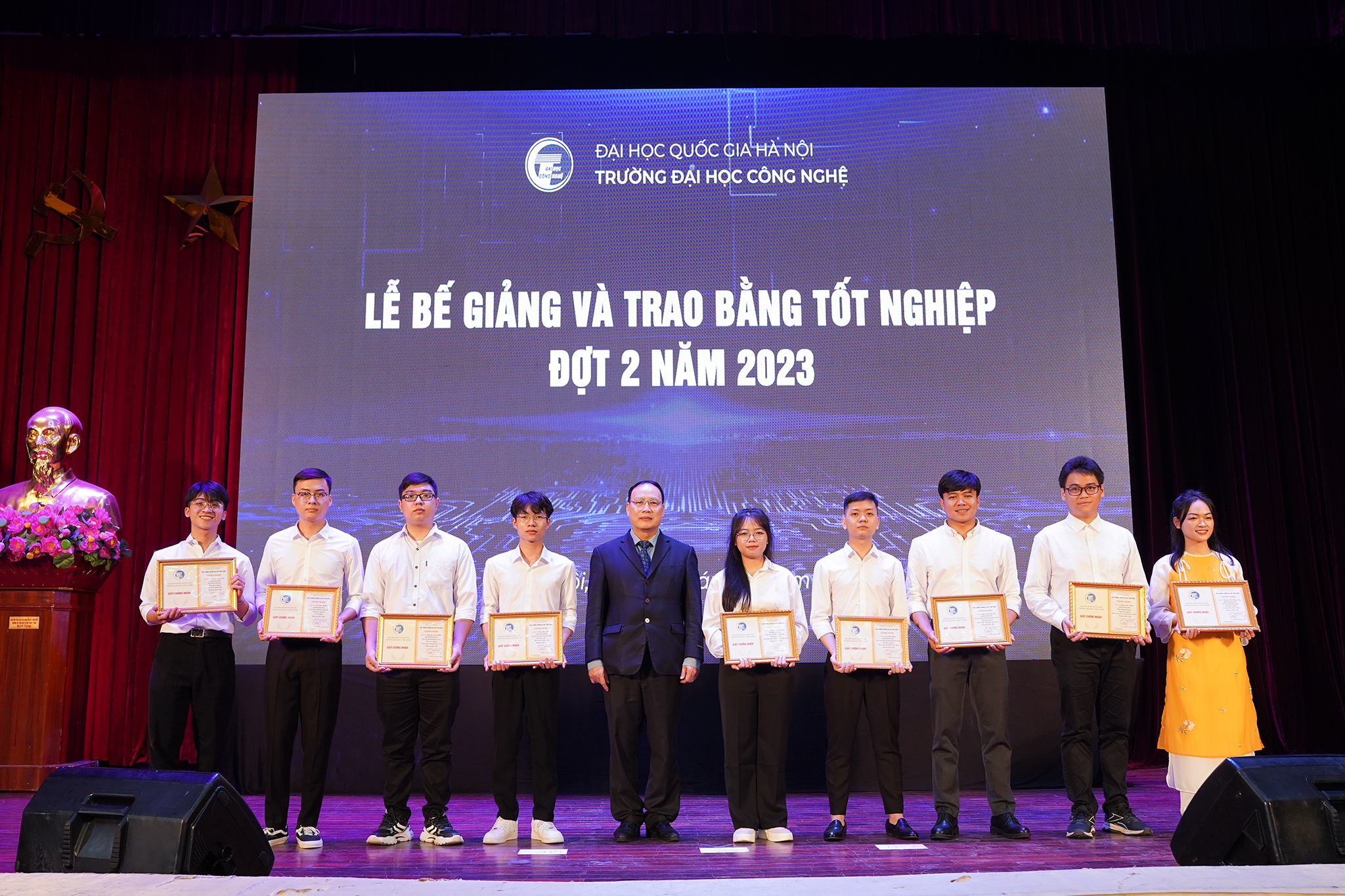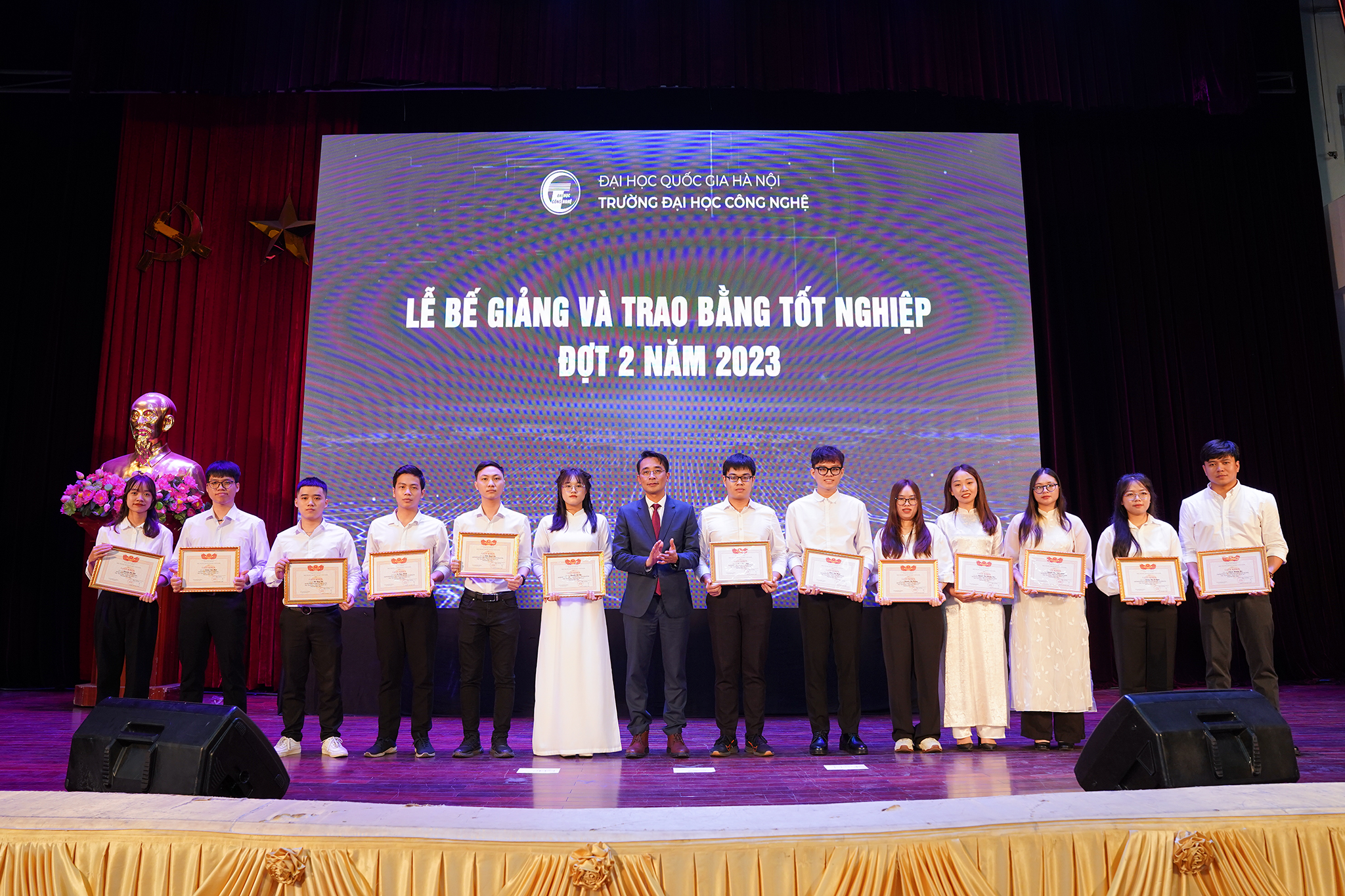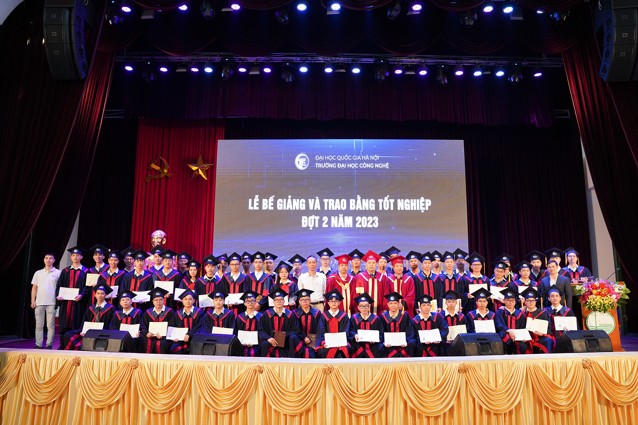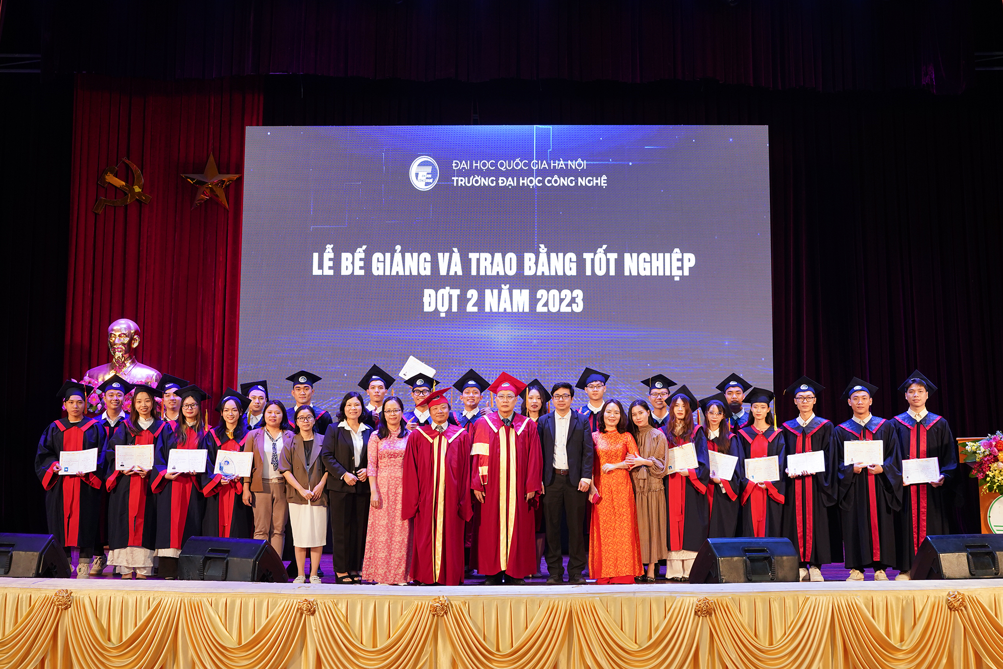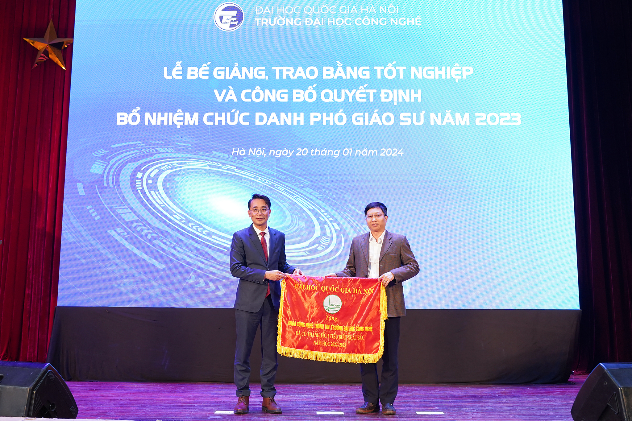 Ngày 20/1/2024, Trường Đại học Công nghệ – ĐHQGHN (UET-VNU) đã long trọng tổ chức Lễ bế giảng và trao bằng tốt nghiệp đợt 2 năm 2023 cho các tân Tiến sĩ, Thạc sĩ, Kỹ sư và Cử nhân, đồng thời công bố các Quyết định bổ nhiệm chức danh Phó Giáo sư năm 2023 tại Hội trường Nguyễn Văn Đạo – ĐHQGHN.