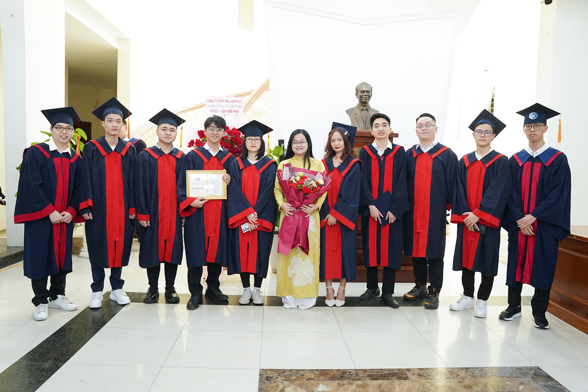 Các tân Tiến sĩ, Thạc sĩ, Kỹ sư, Cử nhân trao tặng những bó hoa tươi thắm cho Ban Giám hiệu và lãnh đạo các khoa