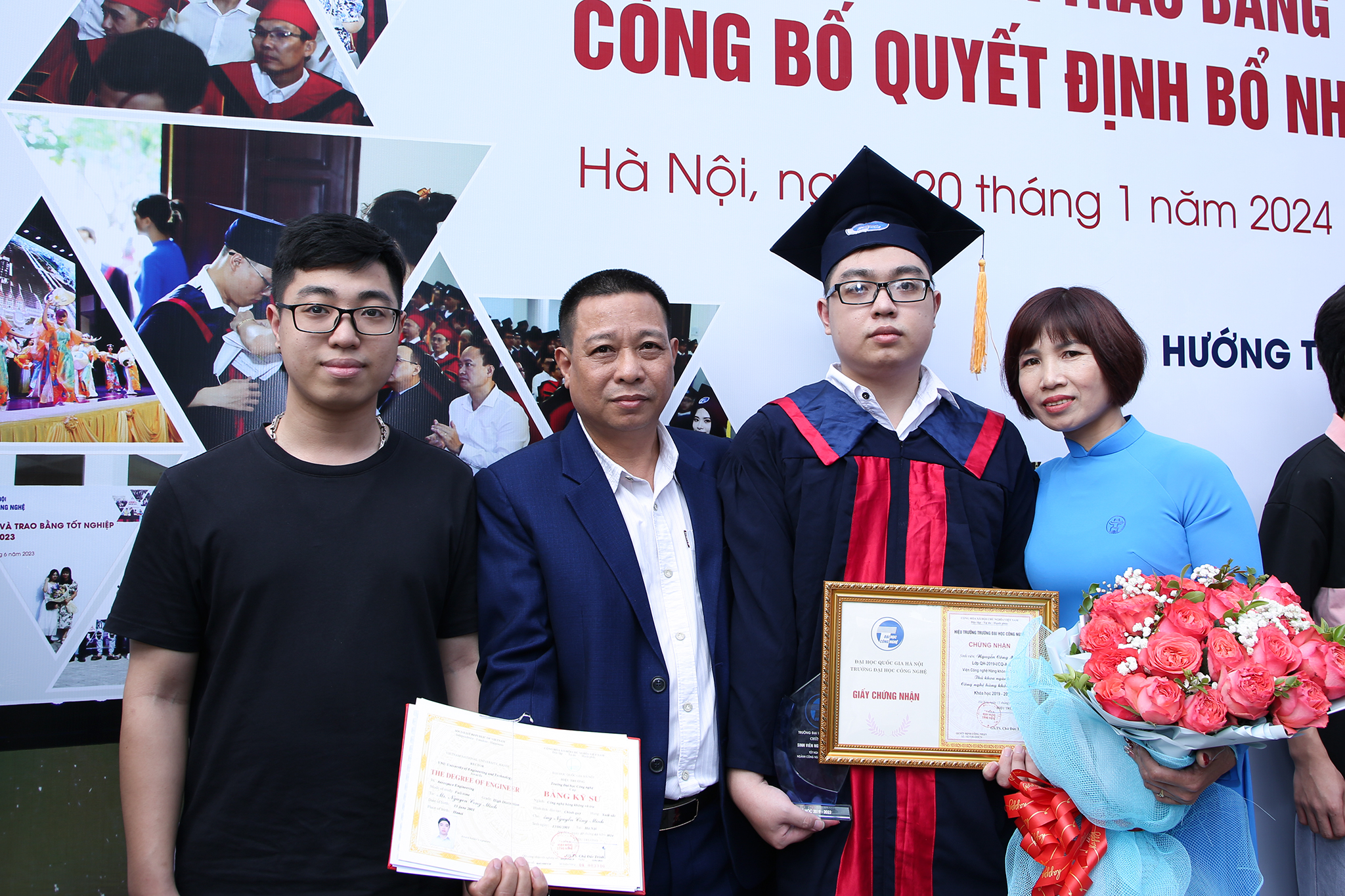 Buổi lễ diễn ra trong không khí hân hoan, tự hào khởi đầu năm mới 2024 hứa hẹn với sự trưởng thành của thế hệ tân tiến kỹ, thạc sĩ, kỹ sư, cử nhân tài năng bước ra từ mái nhà UET để cống hiến cho sự phát triển của đất nước và xã hội. Đây cũng là năm hướng tới chào mừng kỷ niệm 20 năm thành lập Trường Đại học Công nghệ – ĐHQGHN (2004 – 2024) và bắt đầu triển khai thực hiện chiến lược phát triển trường đến năm 2035, tầm nhìn 2045.