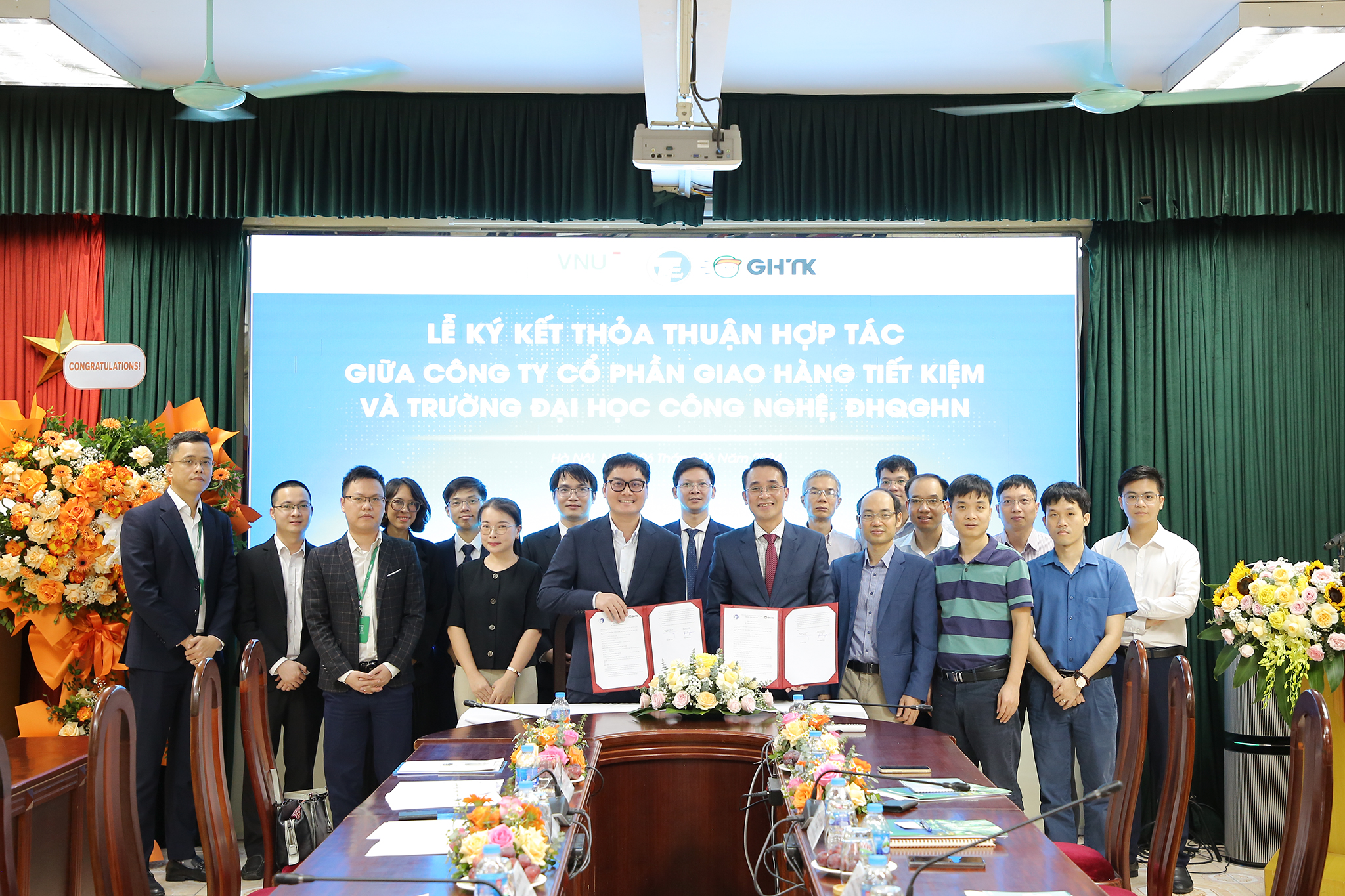 Trên tinh thần thống nhất toàn diện, hai bên đã chính thức ký kết thỏa thuận hợp tác triển khai các dự án nghiên cứu khoa học và phát triển công nghệ. GHTK bố trí nhân sự phụ trách và chuẩn bị đầy đủ các điều kiện cần thiết để tiếp nhận sinh viên UET đến thực tập tại công ty.
