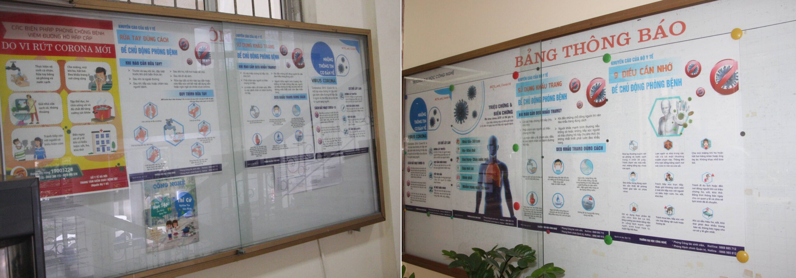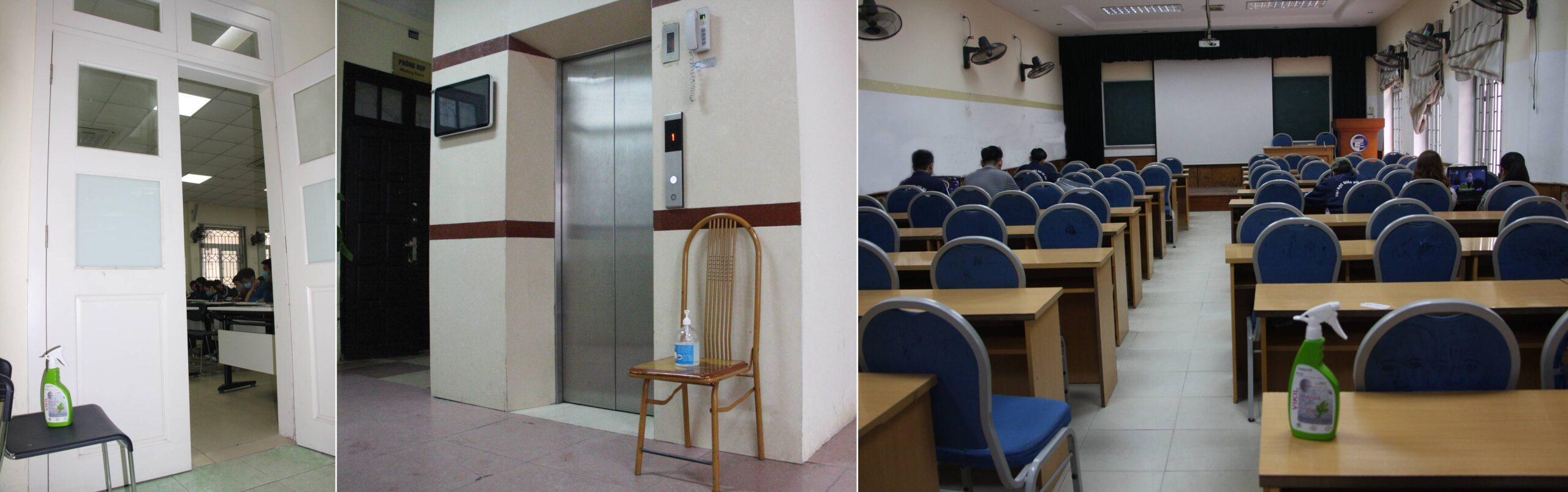 Liên quan đến tình hình phòng dịch và chuẩn bị cho đón tiếp sinh viên, Nhà trường đã chuẩn bị khử khuẩn các giảng đường hằng tuần, trang thiết bị dạy học trước khi giao cho giảng viên, chuẩn bị nước vệ sinh tay tại các giảng đường, thang máy, phòng làm việc. Đồng thời, tại các bảng thông báo Nhà trường dán thông tin về COVID-19, rửa tay và sử dụng khẩu trang đúng cách giúp sinh viên hiểu rõ và bảo vệ bản thân trong khi tình hình dịch vẫn có những diễn biến mới.