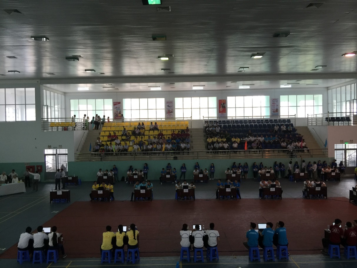 Không gian thi tại buổi thi trắc nghiệm và các thành viên tham gia của đội tuyển trường ĐHCN