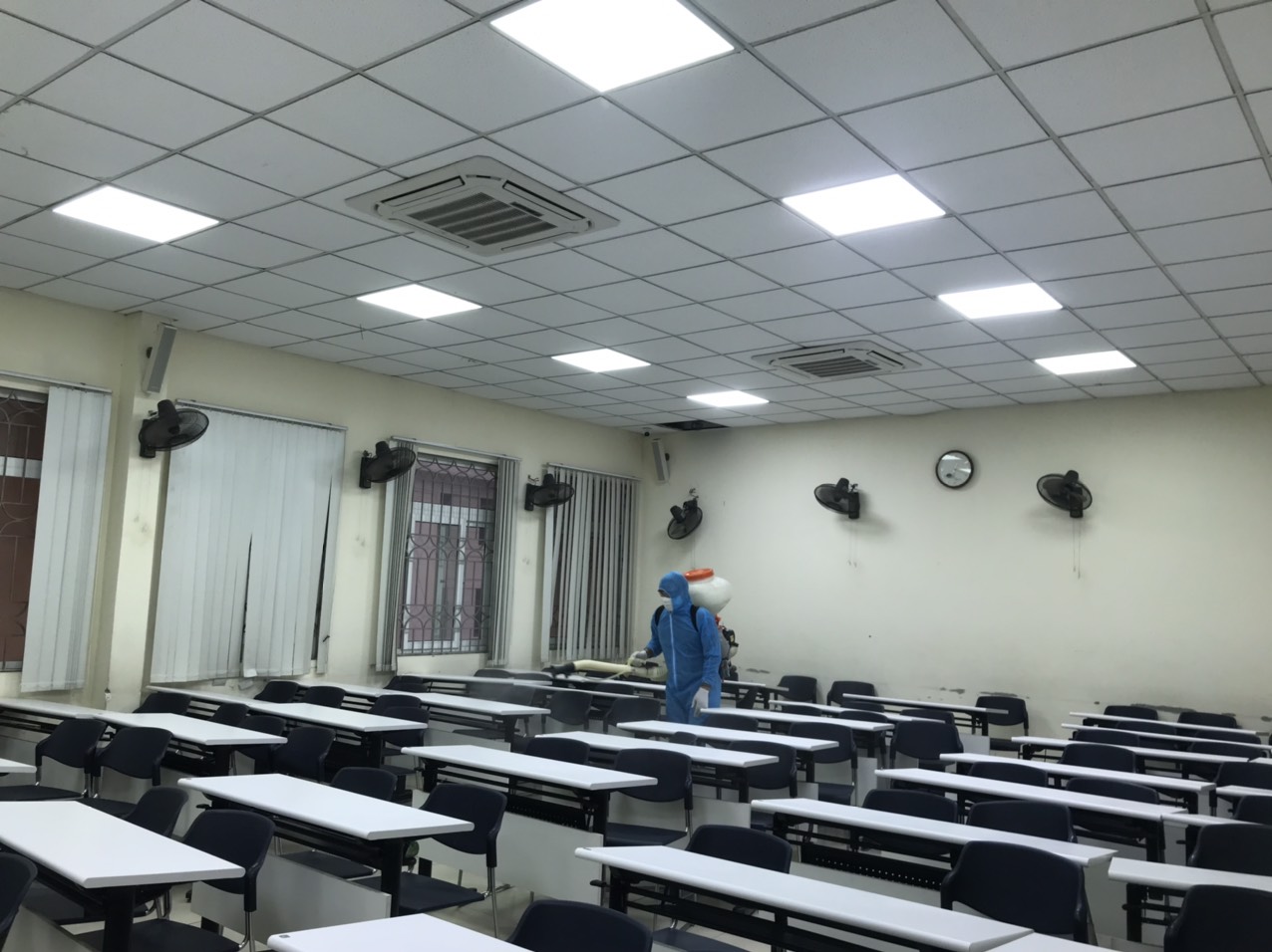 Phun khử khuẩn hành lang, phòng học