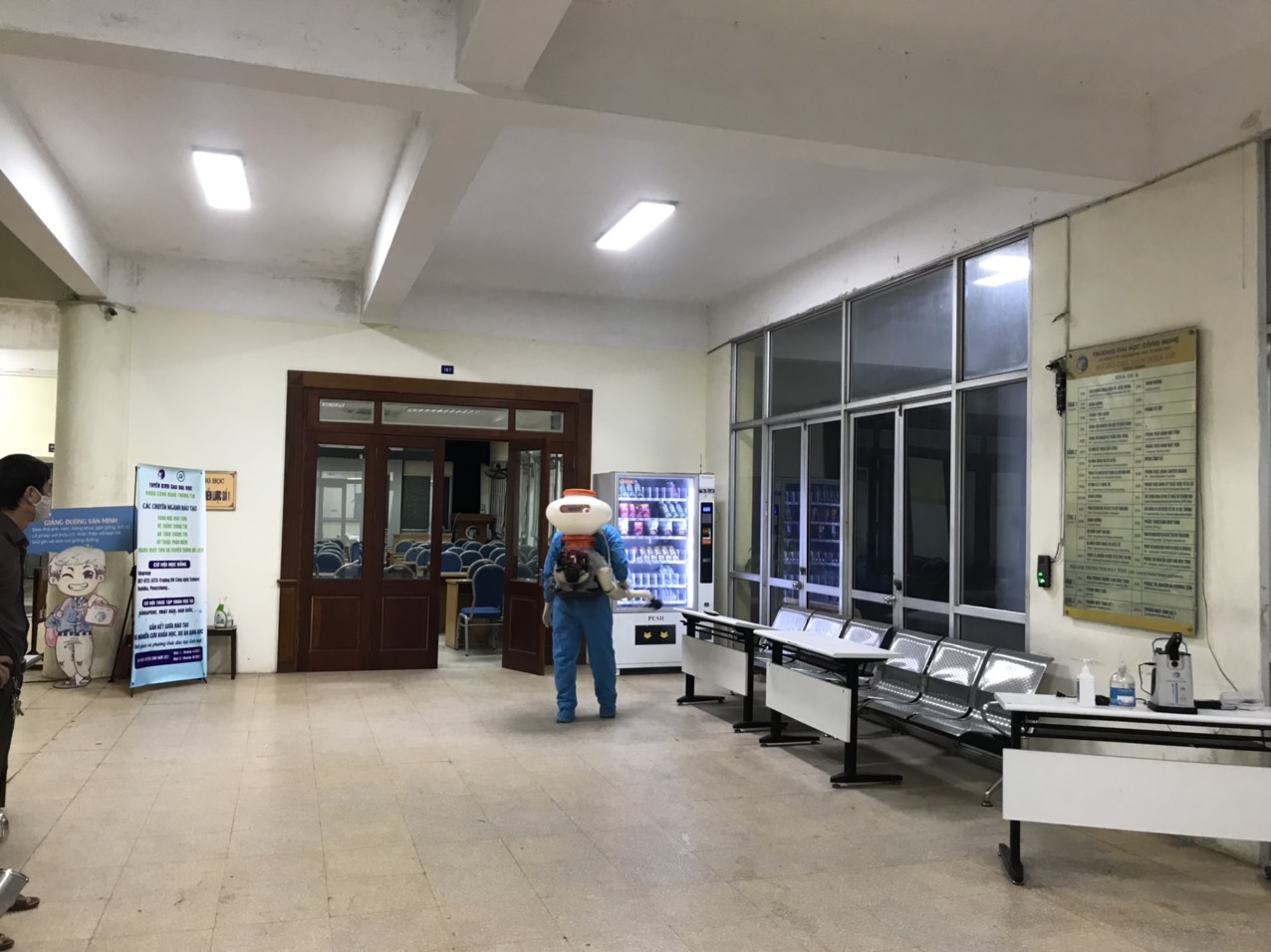 Phun khử khuẩn hành lang, phòng học