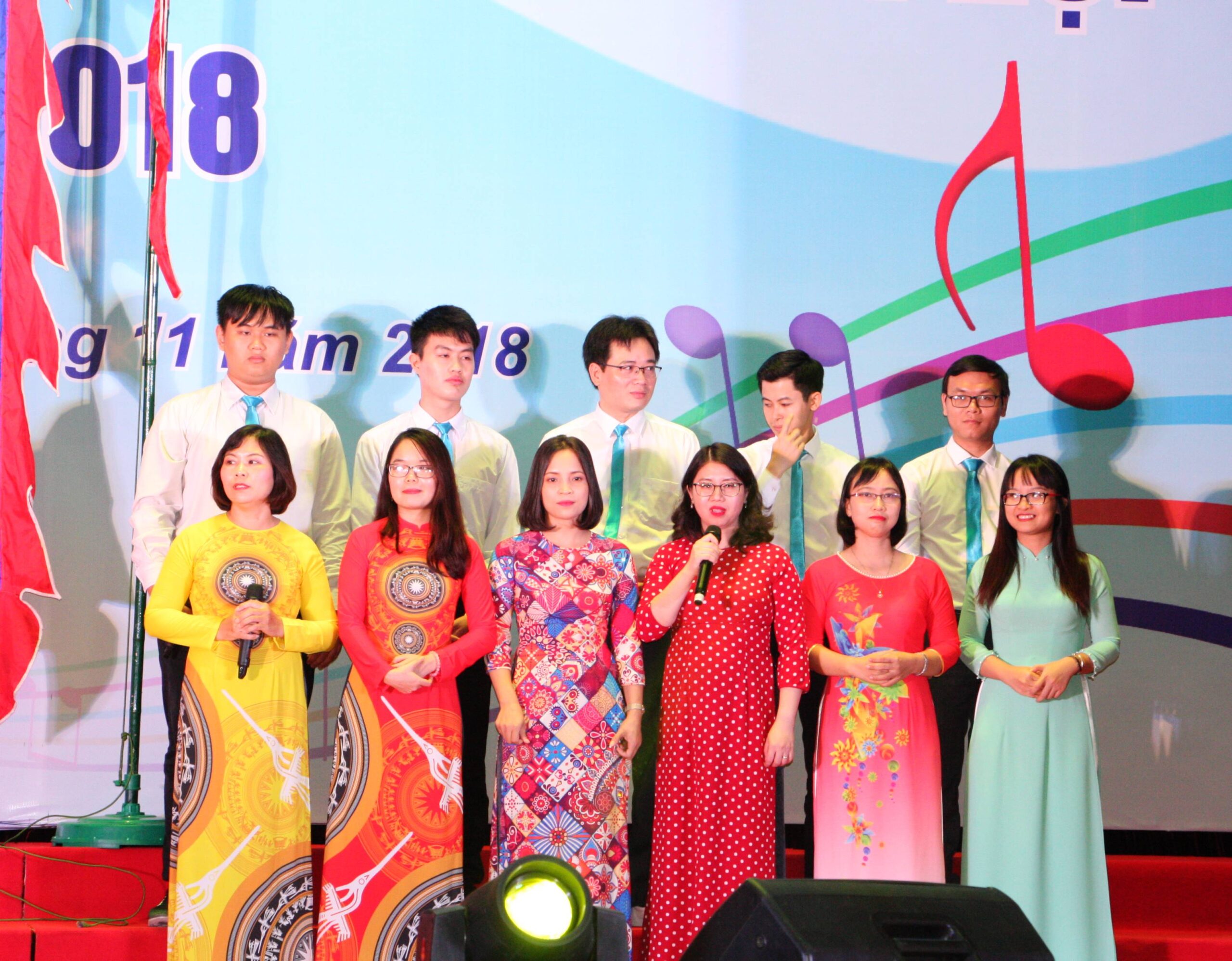 Đội văn nghệ Trường ĐHCN chụp ảnh tại sân khấu