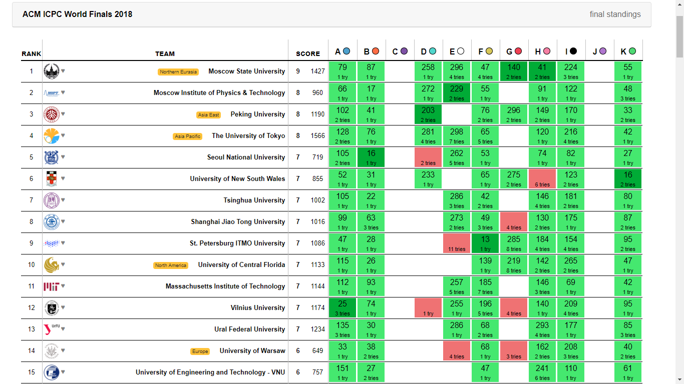 Năm 2018, Việt Nam lần đầu tiên đạt kết quả cao nhất với đội tuyển của Trường ĐHCN nằm trong top 15 của chung kết toàn cầu