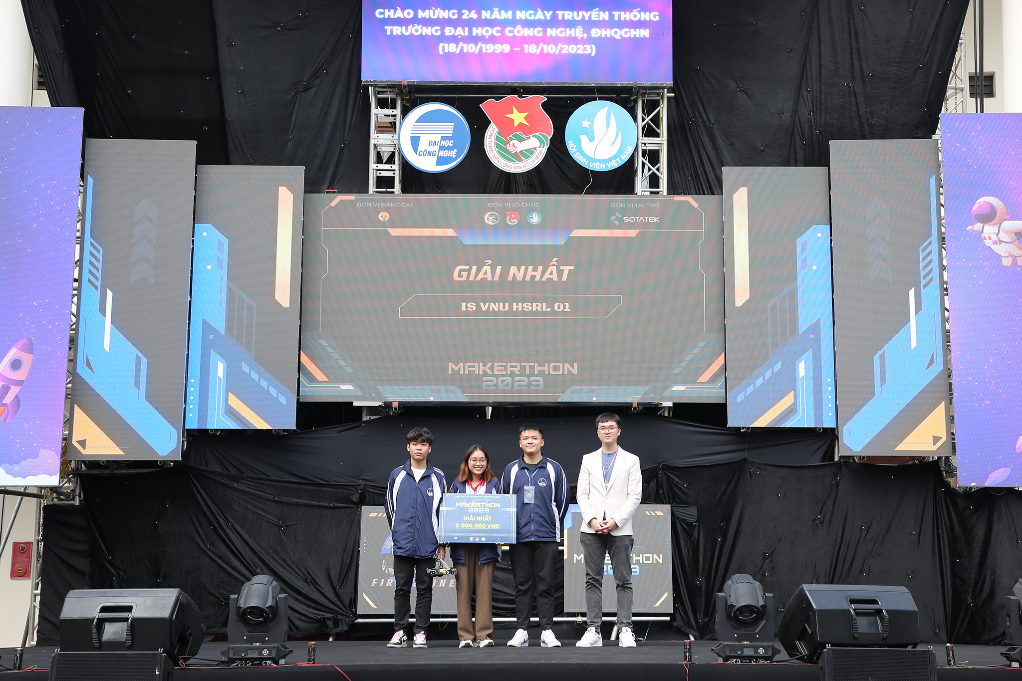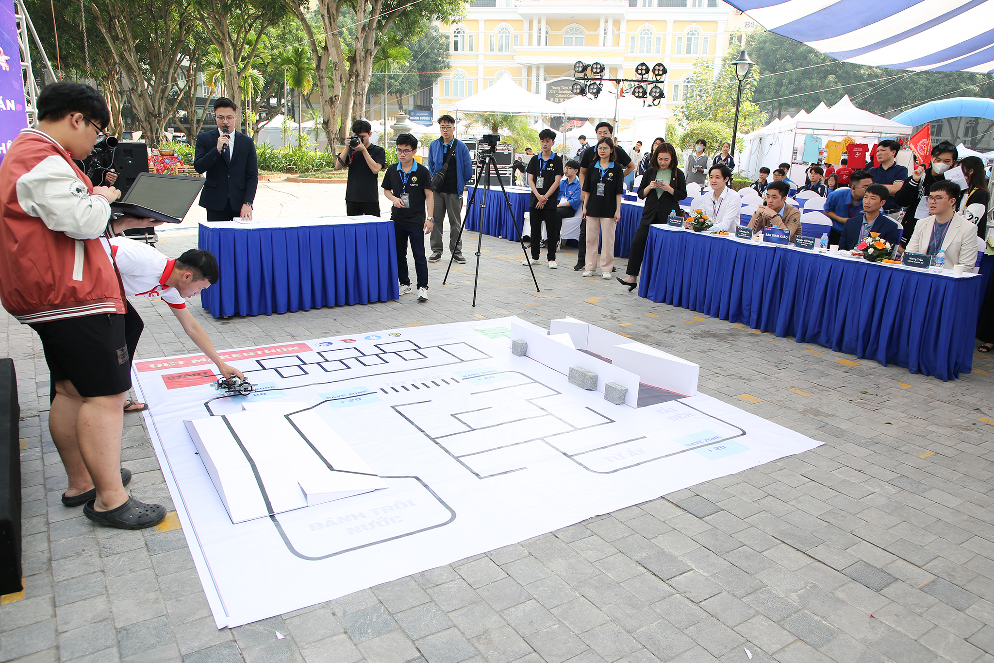Cũng trong chương trình, vòng chung kết cuộc thi “UET – Makerthon 2023” với chủ đề xe dò line thực sự đem lại nhiều cảm xúc cho tất cả khán giả tham dự. Cuộc thi là nơi tìm cảm hứng, trau dồi những ý tưởng kỹ năng cho sinh viên về phát triển xe tự hành thông minh. Cuộc thi bắt đầu từ tháng 10/2023 đến nay 8 đội xuất sắc từ 33 đội được chọn vào vòng chung kết. Sau quá trình mỗi đội có 5 phút thi thử, thi chính thức và trả lời các câu hỏi từ Ban Giám khảo, cuộc thi đã lựa chọn được giải Nhất thuộc về IS HSRL 01; giải Nhì là đội HSRL IS; giải Ba: HSRL – A2 và 2 giải khuyến khích lần lượt là đội EC-Double, Pico.