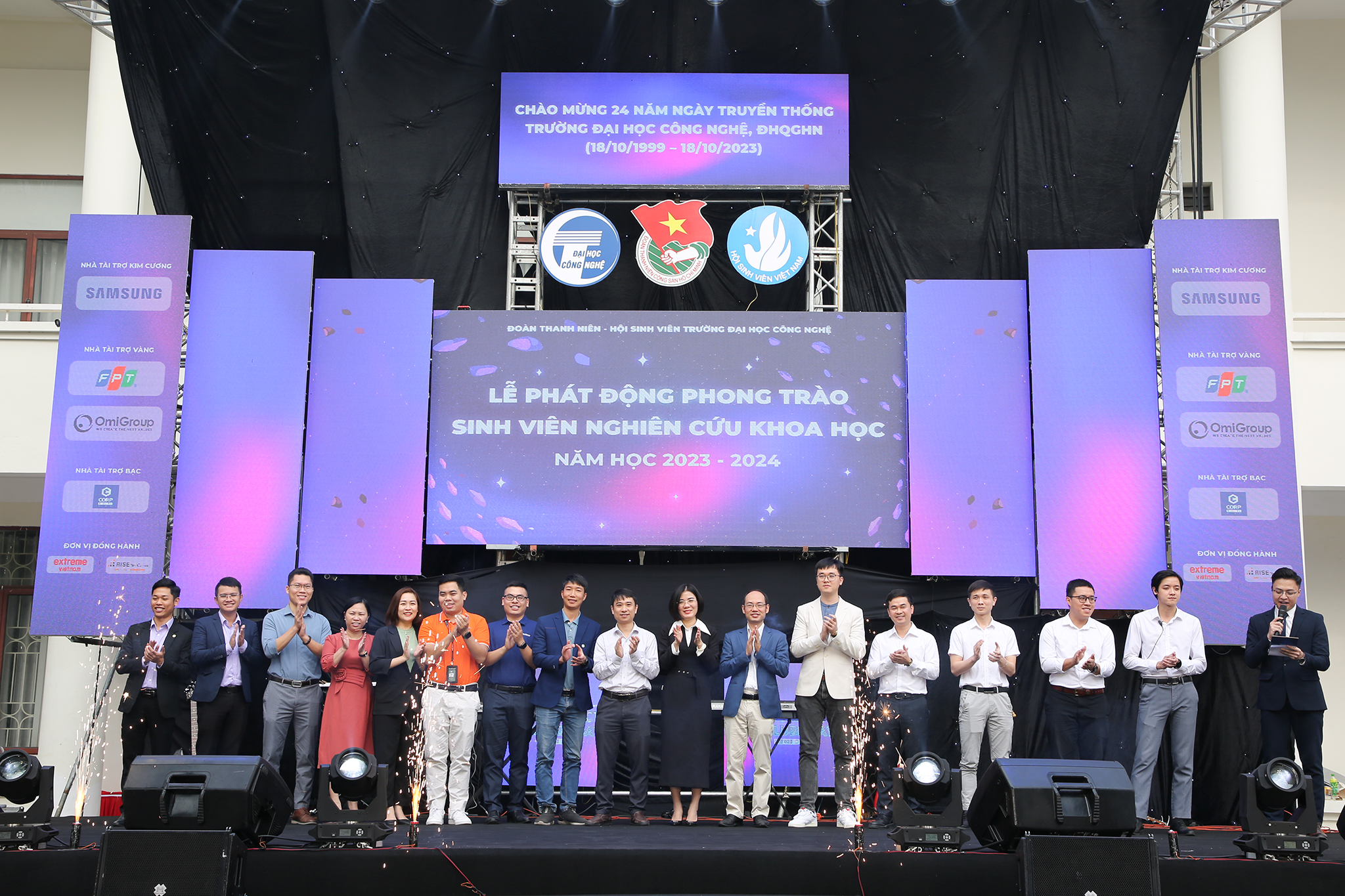 Về phía Trường ĐH Công nghệ có TS. Nguyễn Thu Hương – Phó Hiệu trưởng Nhà trường và đại diện lãnh đạo các đơn vị trong trường; Bí thư Đoàn Thanh niên, Chủ tịch Hội sinh viên. Đơn vị hợp tác có đại diện lãnh đạo của FPT Software, Công ty CP Tập đoàn Omi, Công ty Extreme Việt Nam, Công ty Willtec Việt Nam,….