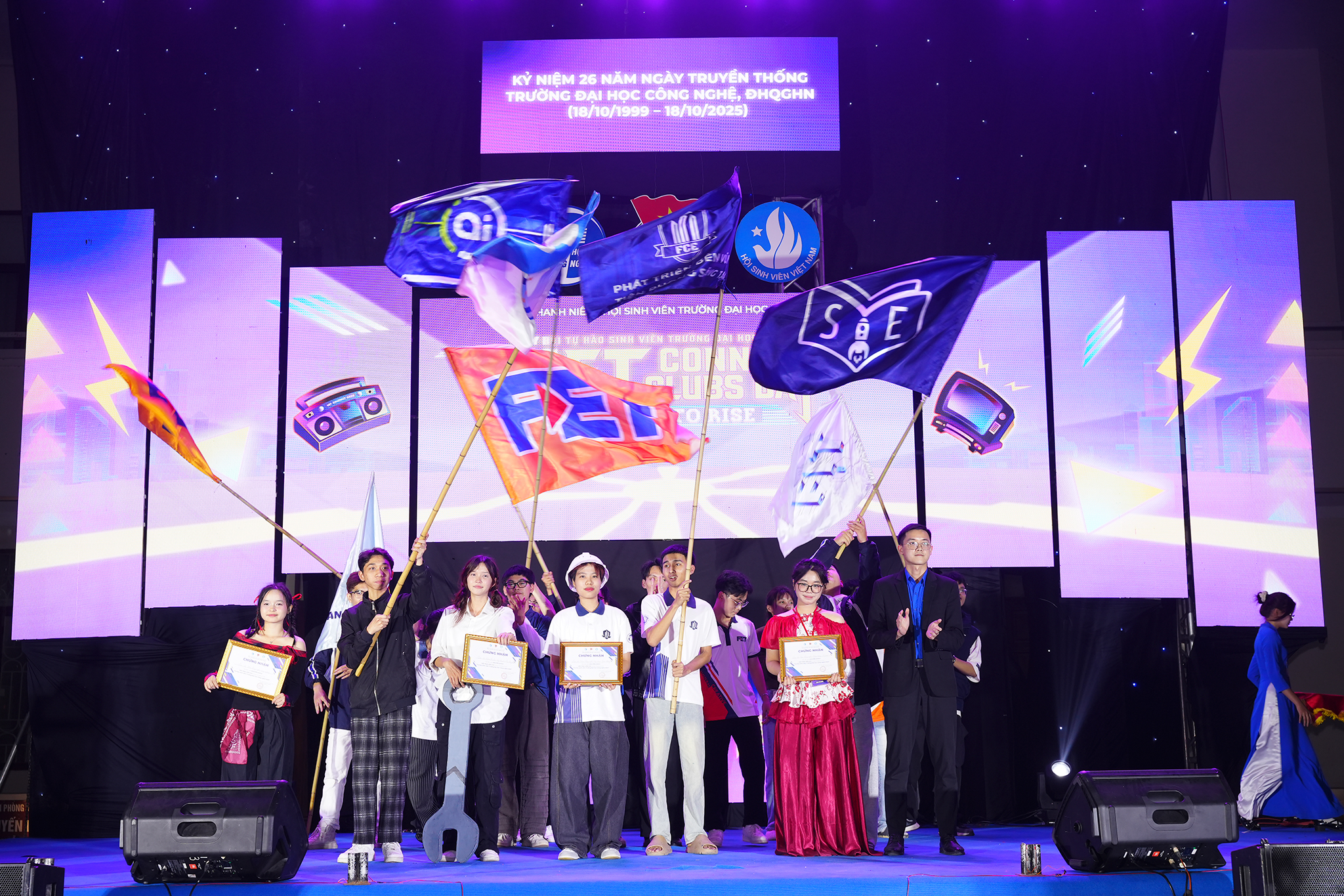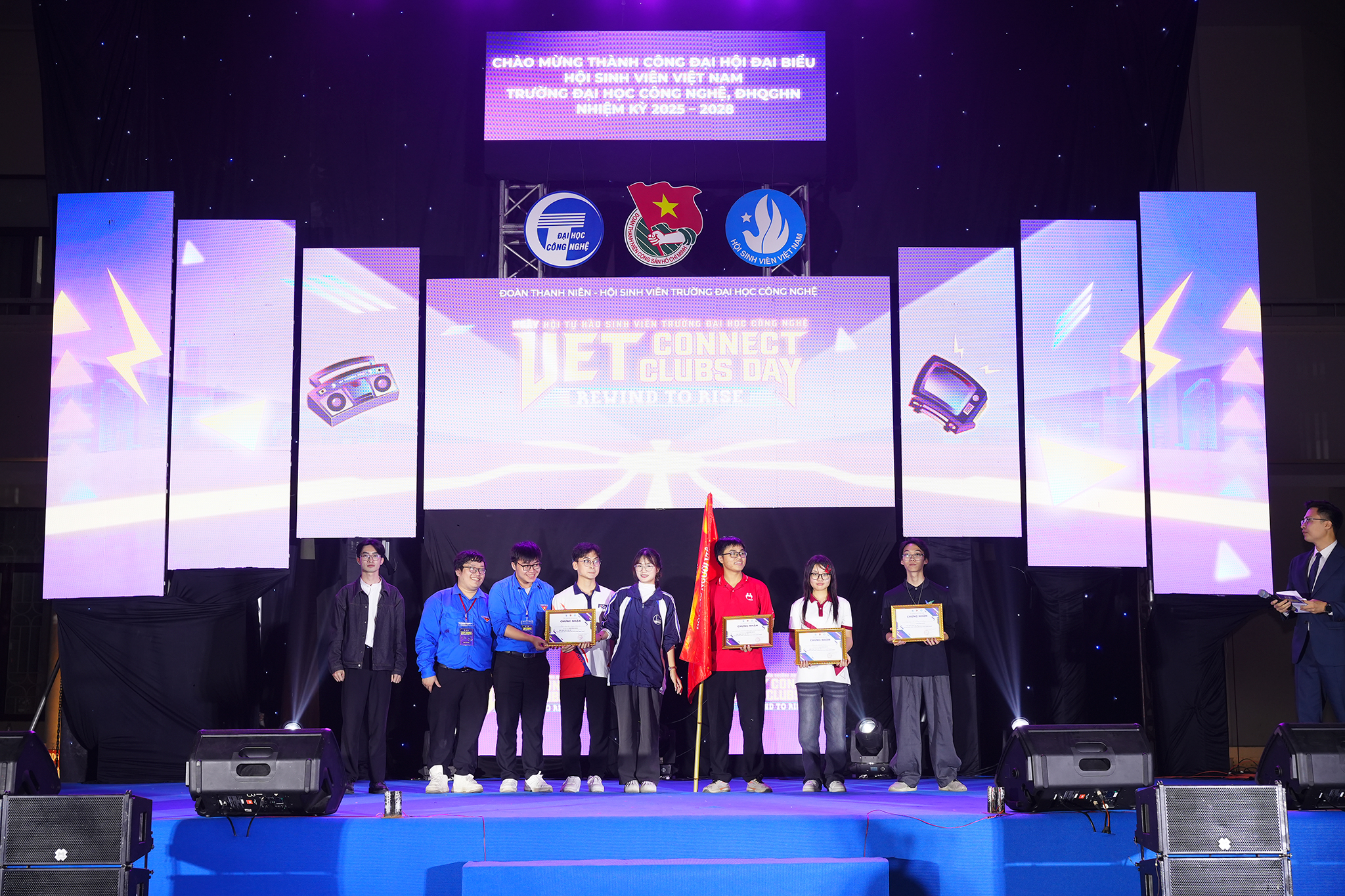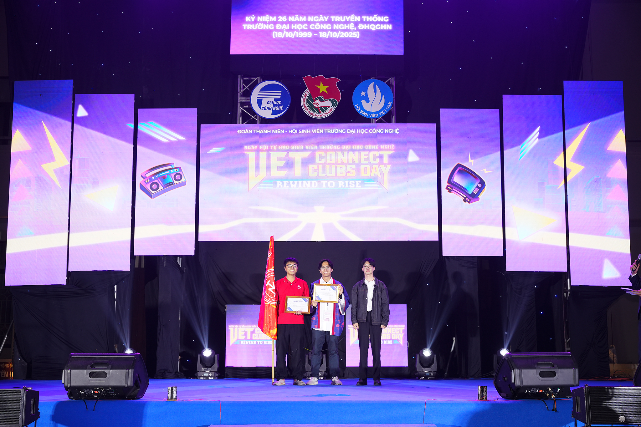 Năm nay “Ngày hội truyền thống – UET Connect 2025” và “UET Club’s Day” với sự tham gia của 8 Liên chi Khoa/Viện cùng 18 câu lạc bộ với 33 gian trại, Đoàn Thanh niên đã chọn ra các gian trại và đội xuất sắc để trao các Giải Trại và Giải Gala văn nghệ tại Gala nhạc hội UET Connect 2025.