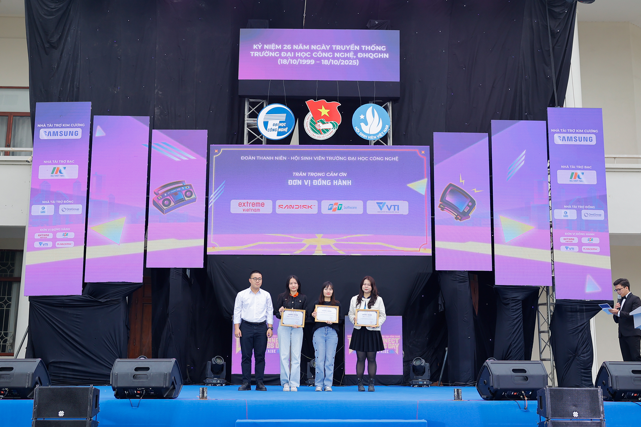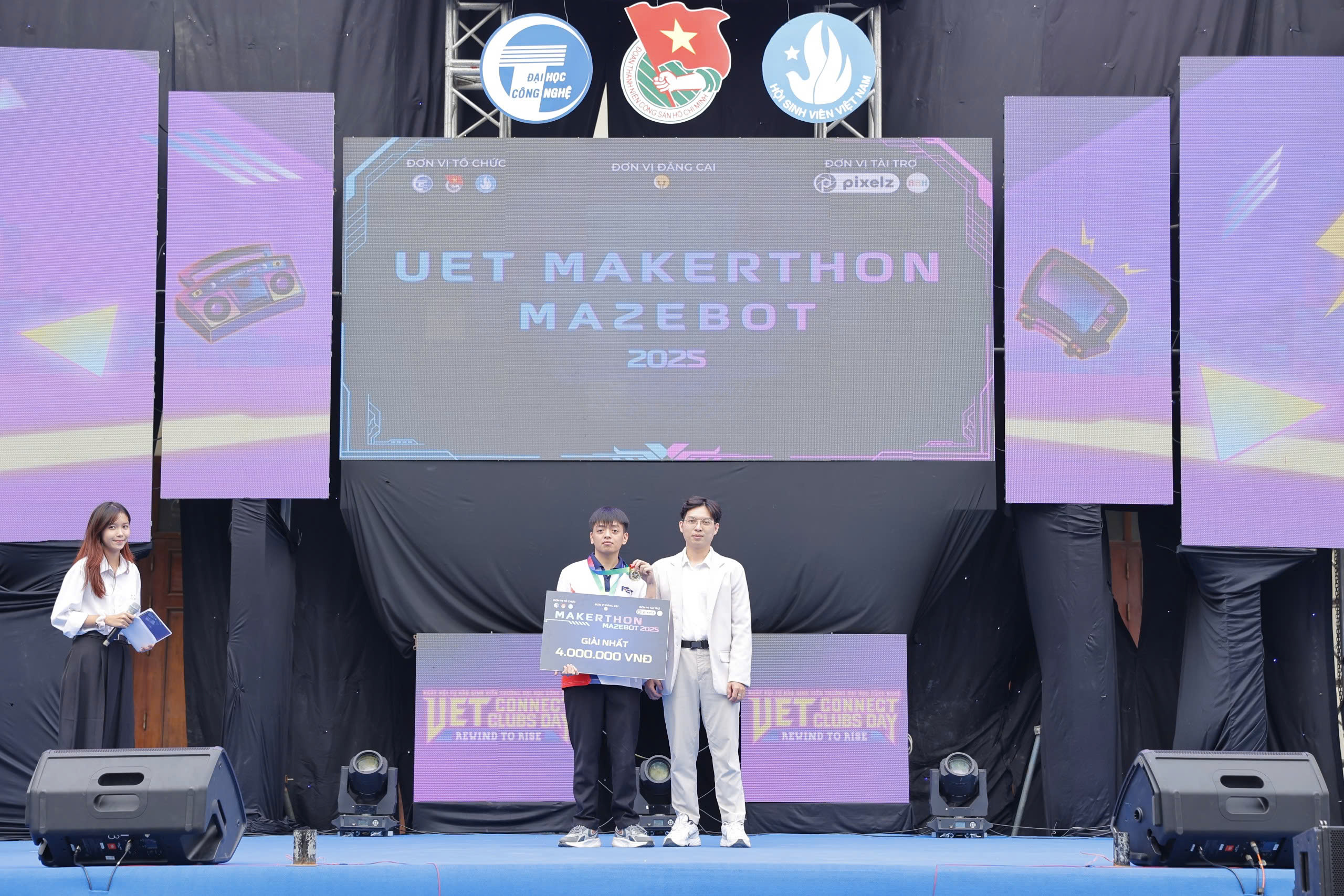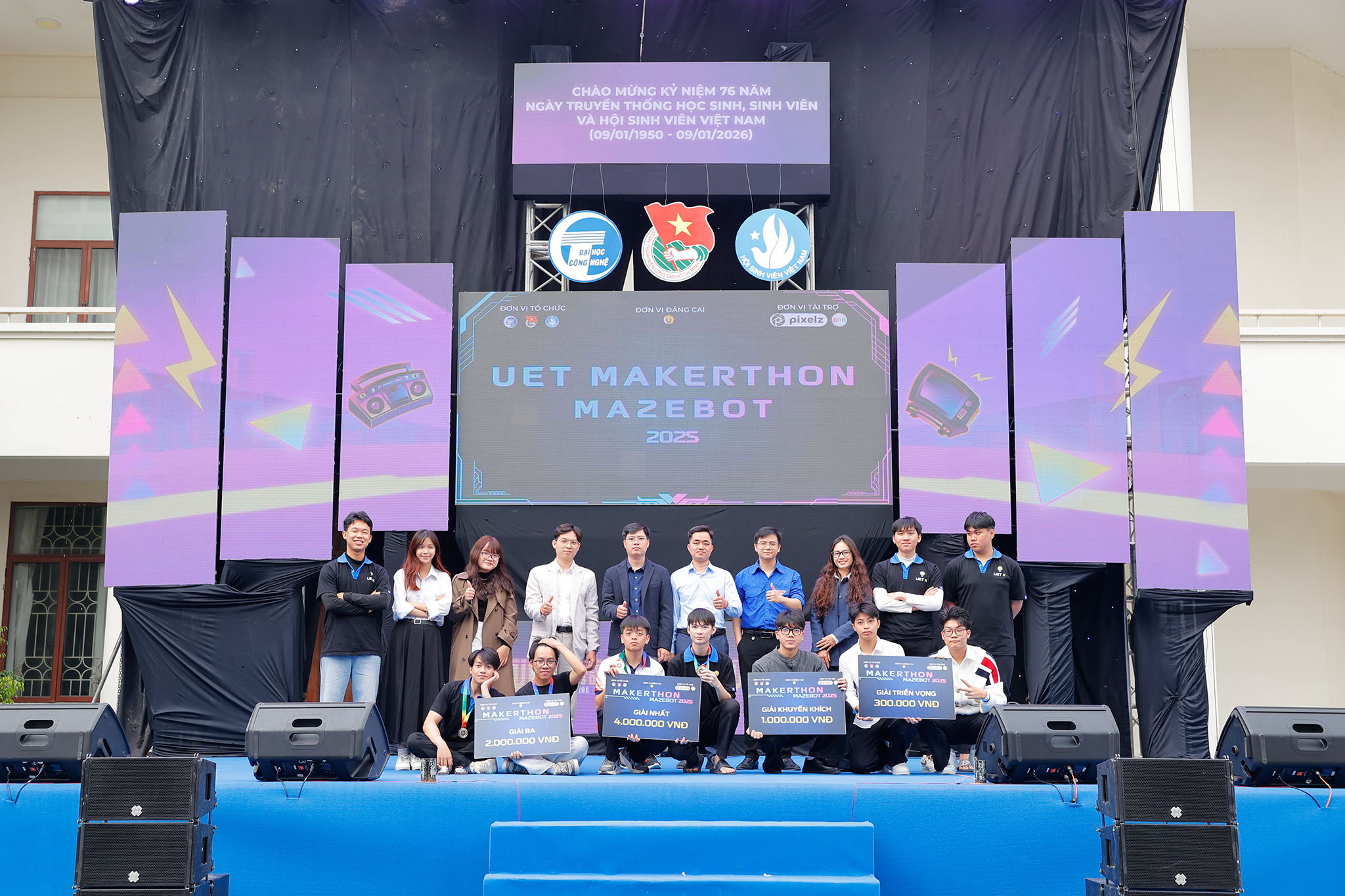 Cũng tại chương trình, vòng chung kết cuộc thi “UET – Makerthon 2025” với chủ đề MAZEBOT là một cuộc thi về robot tự hành. Các đội thi thiết kế và lập trình một robot nhỏ để di chuyển qua một mê cung, tìm đường đi ngắn nhất từ điểm xuất phát đến điểm đích, và hoàn thành nhiệm vụ trong thời gian nhanh nhất có thể. Đây là một thử thách kỹ thuật hấp dẫn, yêu cầu sự kết hợp giữa khả năng thiết kế robot, lập trình thuật toán và khả năng giải quyết các vấn đề trong thời gian thực. Cuộc thi bắt đầu từ tháng 09/2025 đến nay 8 đội xuất sắc từ 38 đội được chọn vào vòng chung kết. Sau phần thi trực tiếp và trả lời câu hỏi từ Ban Giám khảo, cuộc thi đã tìm ra các đội đạt giải Nhất thuộc về đội 20ET; giải Nhì là đội Yang Motion (Trường Đại học Khoa học Tự nhiên); giải Ba đội Flash Bot; 2 giải Khuyến khích lần lượt là đội Lion Tech và Dương Đăng và giải Triển vọng thuộc về đội Bão, Nv9 và Sunflower (Học viện Công nghệ Bưu chính viễn thông).