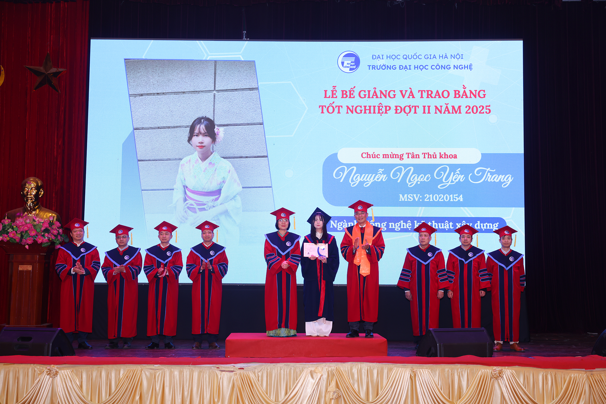 Nguyễn Ngọc Yến Trang, ngành Công nghệ Kỹ thuật xây dựng (khóa QH-2021) nhận bằng tốt nghiệp tại Lễ bế giảng và trao bằng tốt nghiệp đợt 2 năm 2025