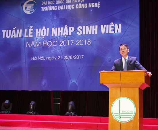 Trong buổi gặp mặt các tân sinh viên (Khóa QH-2017-I/CQ), Phó Hiệu trưởng Chử Đức Trình đã gửi lời chúc mừng đến các tân sinh viên Trường ĐHCN. PGS nhấn mạnh khẩu hiệu của Trường là “Sáng tạo – Tiên phong – Chất lượng cao”. Phó Hiệu trưởng tiếp tục truyền đạt đến những sinh viên K62 về truyền thống, lịch sử hình thành và phát triển của Nhà trường. Đồng thời PGS đã nhắc đến những tấm gương cựu sinh viên thành công trong sáng tạo khởi nghiệp và được nhận nhiều giải thưởng quan trọng như Nhân tài Đất Việt. Qua đó, chuyển tải đến sinh viên lòng tự hào khi được học tập dưới mái trường ĐHCN.