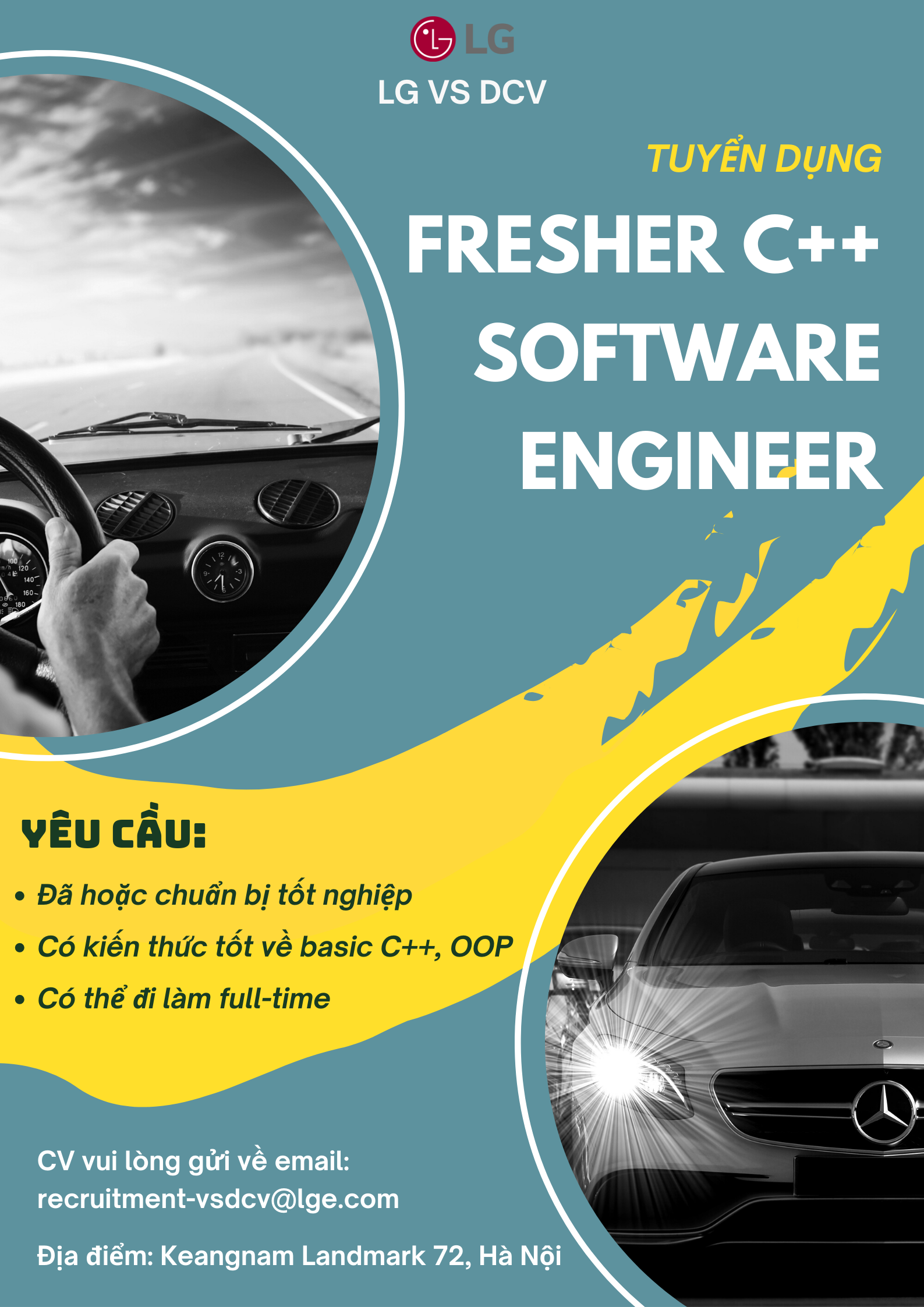 Ứng viên vui lòng gửi CV ứng tuyển về địa chỉ email: recruitment-vsdcv@lge.com