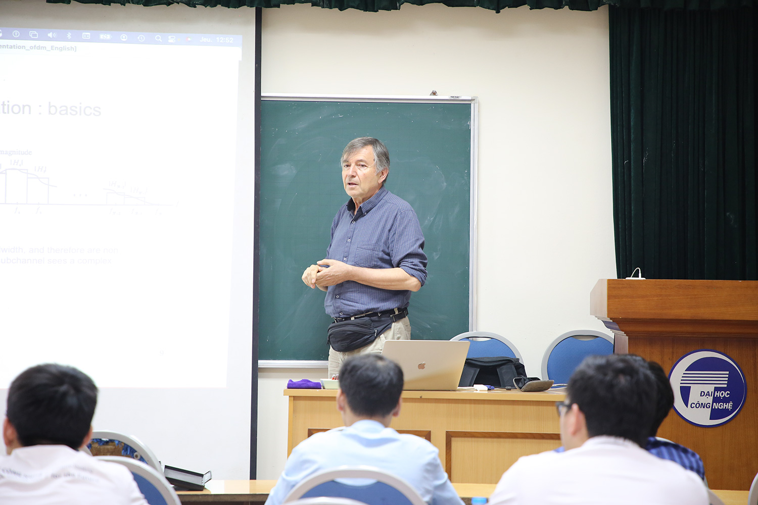 GS.TSKH Pierre Duhamel giảng dạy cho những học viên khóa I của chương trình đào tạo Thạc sĩ liên kết và sinh viên khoa Điện tử viễn thông