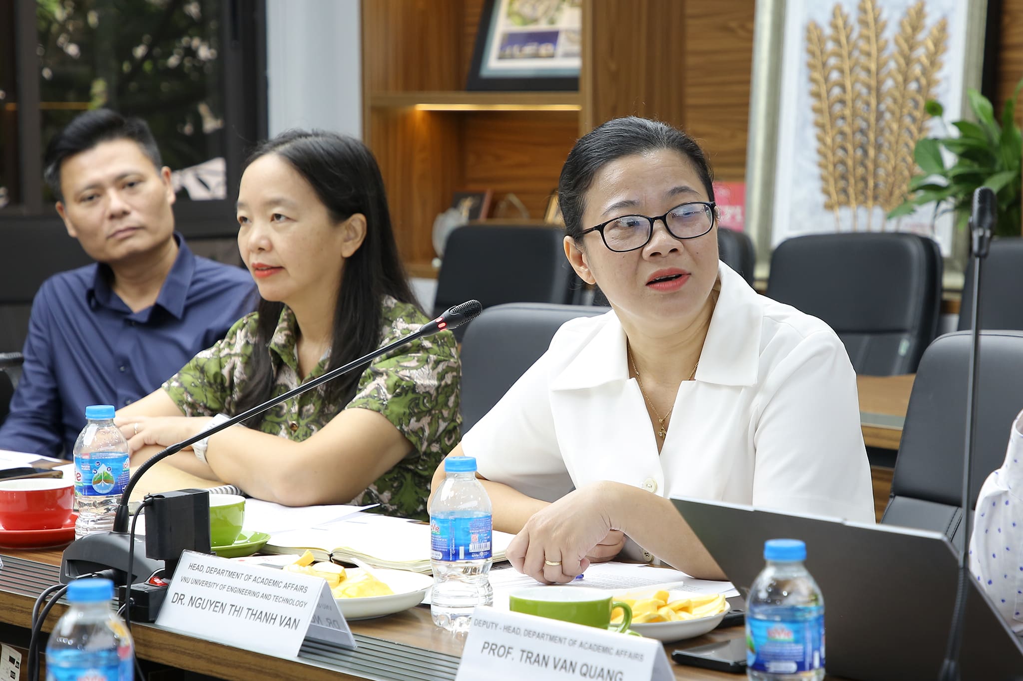 Phát biểu tại buổi làm việc, TS. Nguyễn Thu Hương – Phó Hiệu trưởng Nhà trường nhấn mạnh mối quan hệ hợp tác bền chặt giữa Trường ĐH Công nghệ và ĐH Chiba trong thời gian qua. Hai bên thường xuyên tổ chức các chuyến thăm, giao lưu học thuật, trao đổi giảng viên và sinh viên. Chuyến làm việc lần này không chỉ là dịp tăng cường hợp tác, mà còn là cơ hội để Trường ĐH Công nghệ học hỏi thêm những kinh nghiệm quý báu của ĐH Chiba trong đào tạo, quản trị đại học và công tác sinh viên.