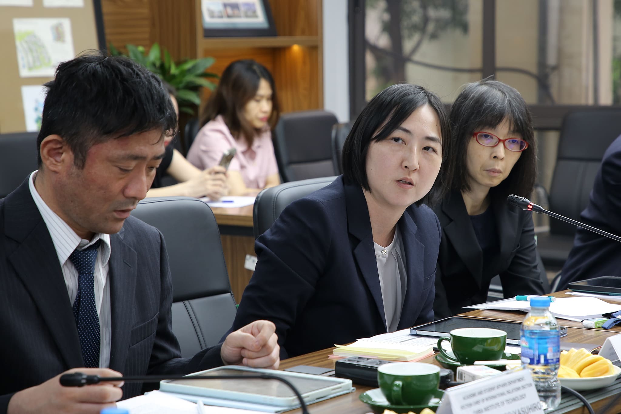 Về phía ĐH Chiba, Nhật Bản có ông Ogawa Yasuo – Ủy viên Thường trực Hội đồng quản trị – Trưởng đoàn; ông Satoru Harada – Cố vấn, cùng đại diện các phòng Công tác sinh viên, Tuyển sinh, Quan hệ công chúng và Tài chính.