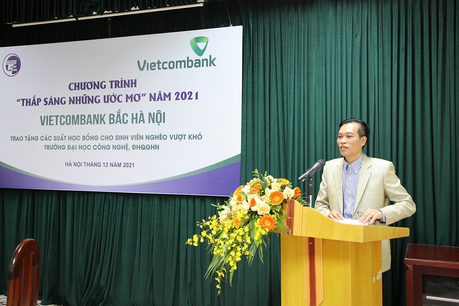 Ngày 13/12/2021, Trường Đại học Công nghệ (Đại học Quốc gia Hà Nội) phối hợp với Ngân hàng TMCP Ngoại thương Việt Nam (Vietcombank) chi nhánh Bắc Hà Nội đã tổ chức chương trình “Thắp sáng những ước mơ năm 2021”, trao tặng những suất học bổng cho sinh viên nghèo vượt khó.