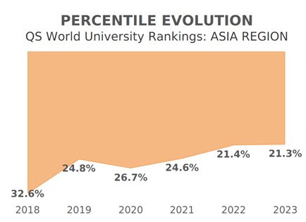 Trong kỳ xếp hạng QS AUR 2023, tổ chức QS đã xếp hạng cho 760 cơ sở giáo dục đại học của châu Á (trong đó có 34 cơ sở giáo dục đại học lần đầu được xếp hạng). Kết quả xếp hạng này được dựa trên phân tích phản hồi từ hơn 151.000 học giả và 99.000 nhà tuyển dụng trên toàn thế giới; cùng với đó, QS đã phân tích hơn 117,8 triệu trích dẫn (trong giai đoạn 2016-2021) từ 16,4 triệu công bố khoa học (trong giai đoạn 2016-2020).
